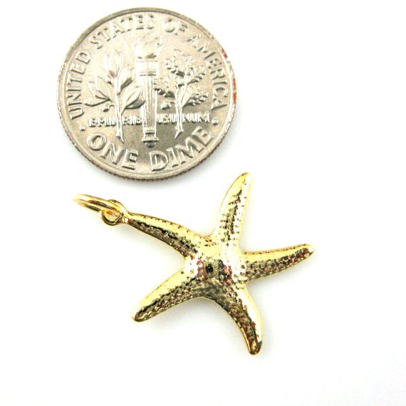Material: Gold over 925 Sterling silver made in ItalyShape: Textured starfish charmMeasurement: Approximately 20mm long without a ring, 19mm wide attached ring size 5mm