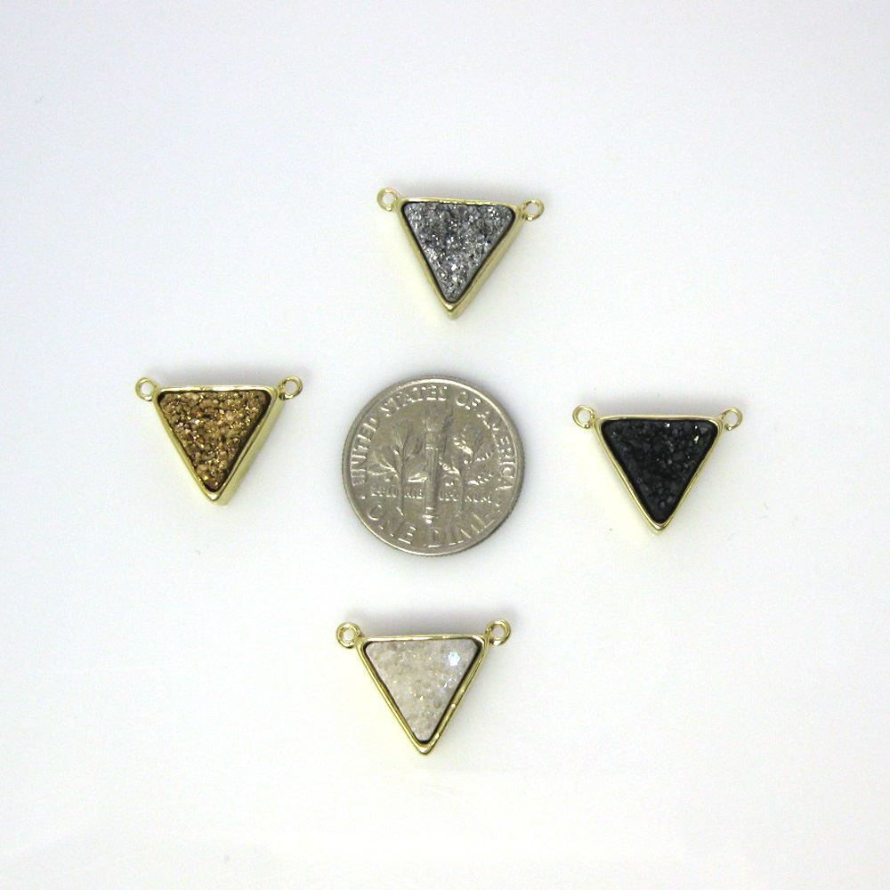 Stone: Geode Druzy Agate - Druzy AgateMaterial: Gold Plated Natural AgateShape: TriangleMeasurement: 12.5-16.5mm, thickness 5.5mmWeight: Approximately 1.4-1.7 grams per piece.Quantity: 1 pendant