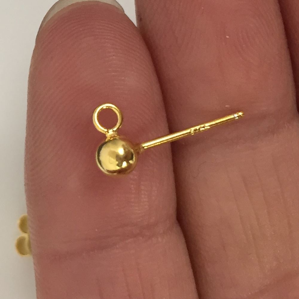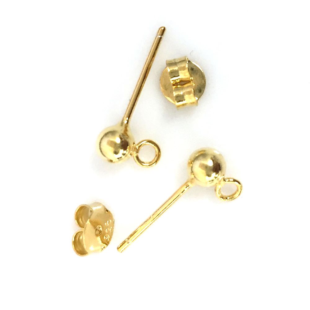 Quantity: 1 pair (2 posts, 2 backs)Style: Single post with ball+ring - open or closedMeasurements: Ball is 4.1mmMaterial: 22K Gold plated over 925 sterling silver