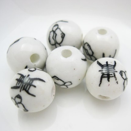This listing is for 6 pieces of Handpainted pottery Beads, round shape with beautiful design.