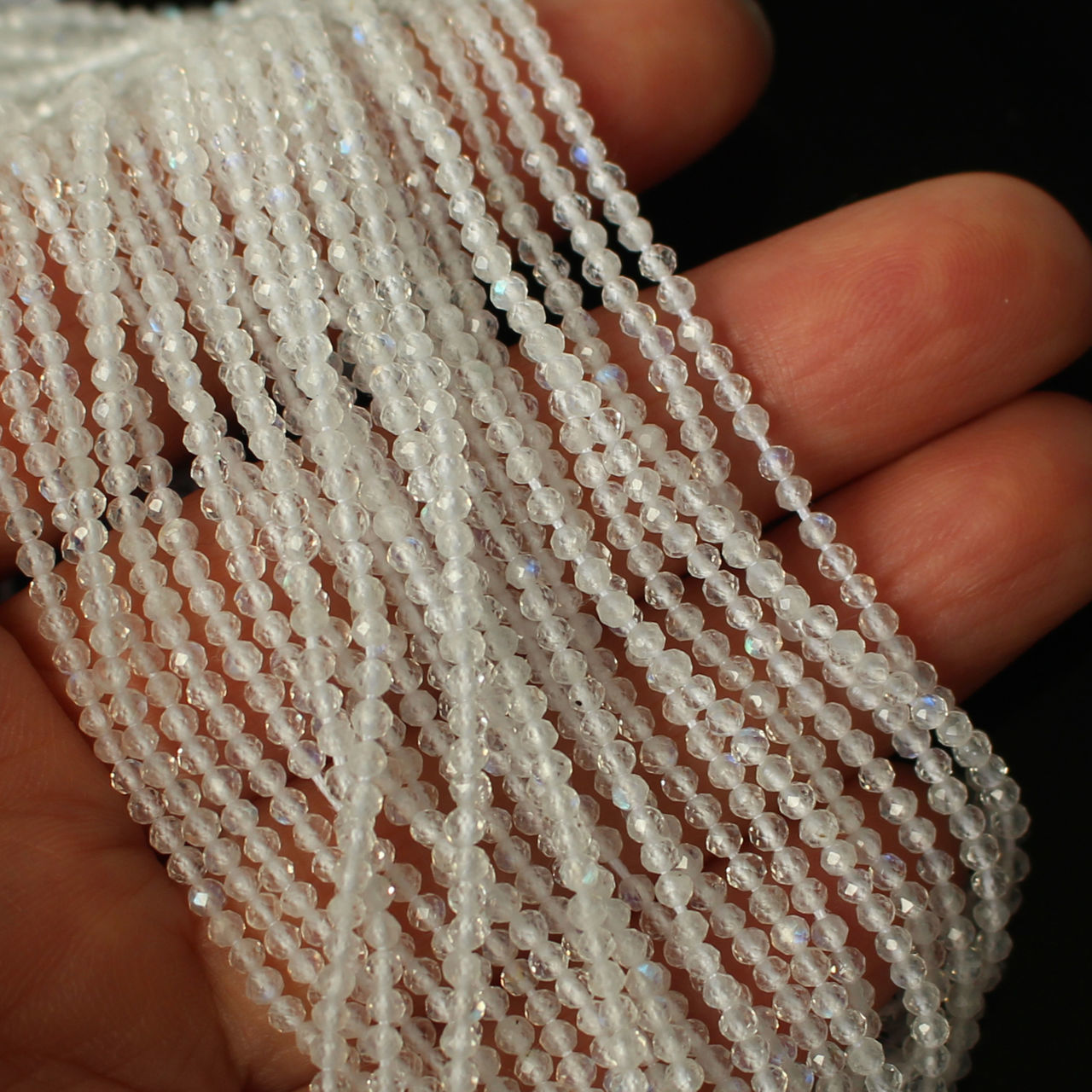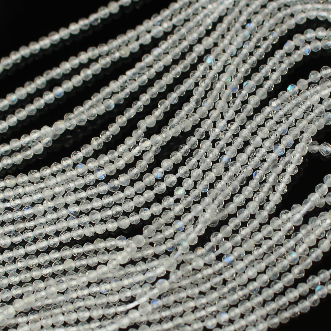Gemstone Name: Natural rainbow moonstoneShape: Faceted Round Size:2.2mm Length: 13 Inches Number of Beads: About 170 BeadsOrigin: India
