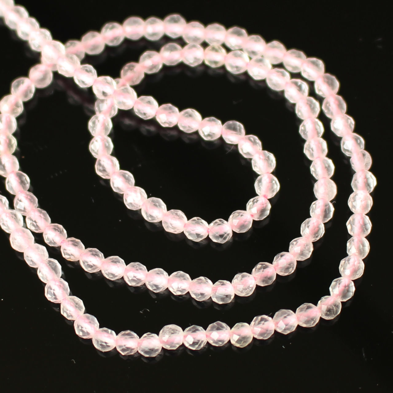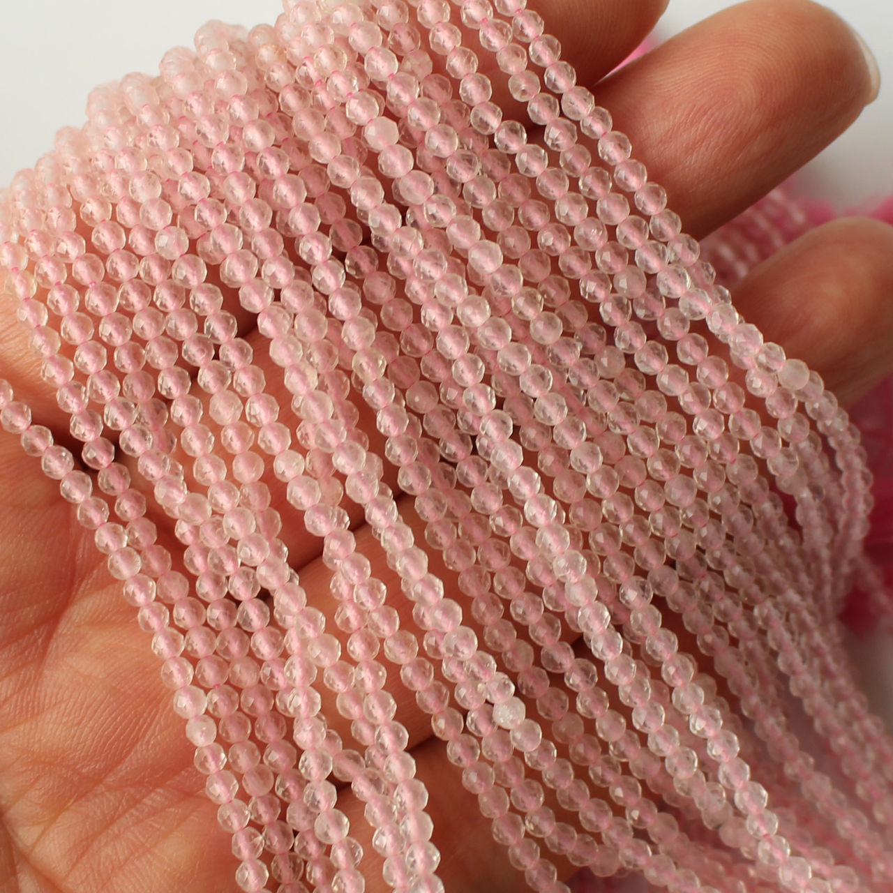 Gemstone Name: Natural Pink rose quartzShape: Faceted Round Size:2.5mm Length: 13 Inches Number of Beads: About 140 BeadsOrigin: India