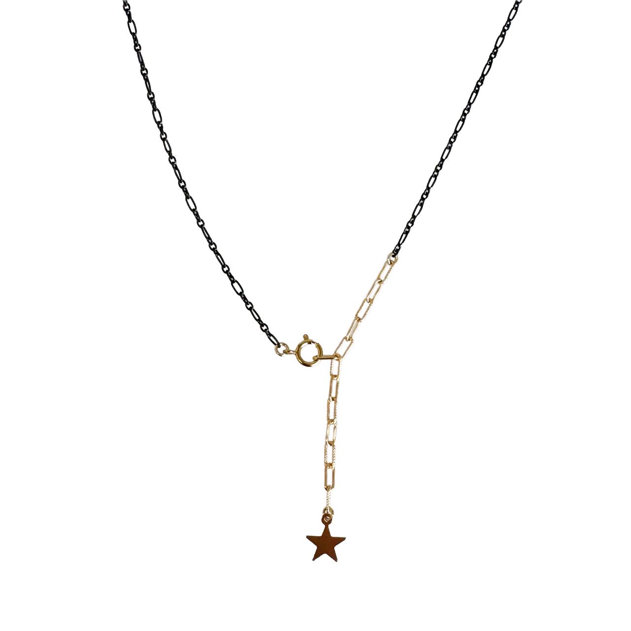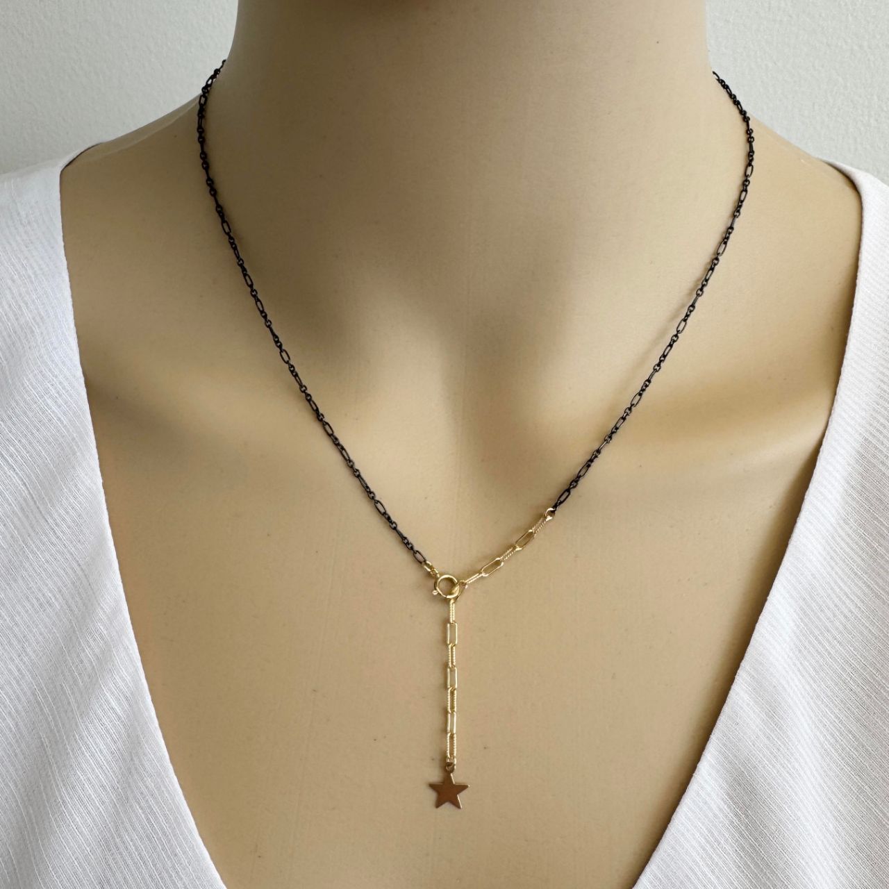 Add to compare list Oxidized 925 Sterling Silver Lariat Necklace with 1/20 14K Gold Filled Clover Chain and Charm Accent SKU : N0202X-GF Mixed Metal- Oxidized 925 Sterling Silver and 1/20 14K Gold Filled. Adjustable from 16.5" to 18" in Length. Log In for Wholesale Prices