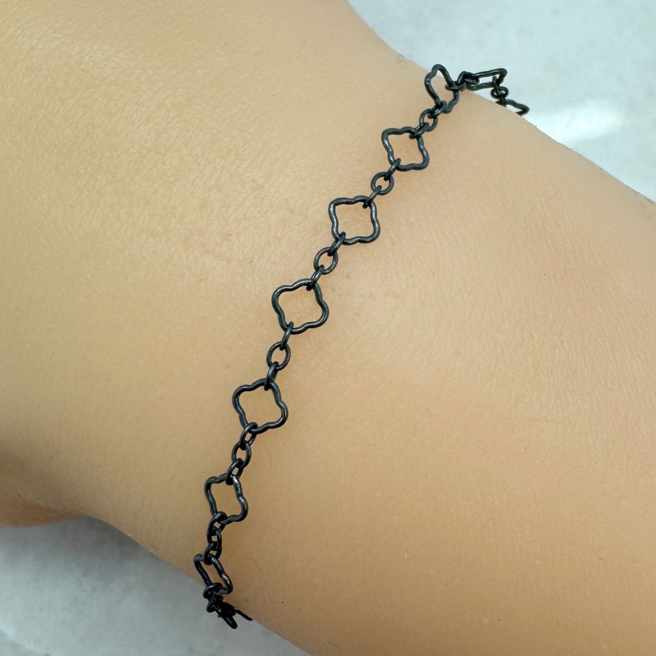 Add to compare list Oxidized 925 Sterling Silver 3.5mm Clover link Bulk Chain - Sold By The Foot SKU : 101112OX 7 links per inch Log In for Wholesale Prices