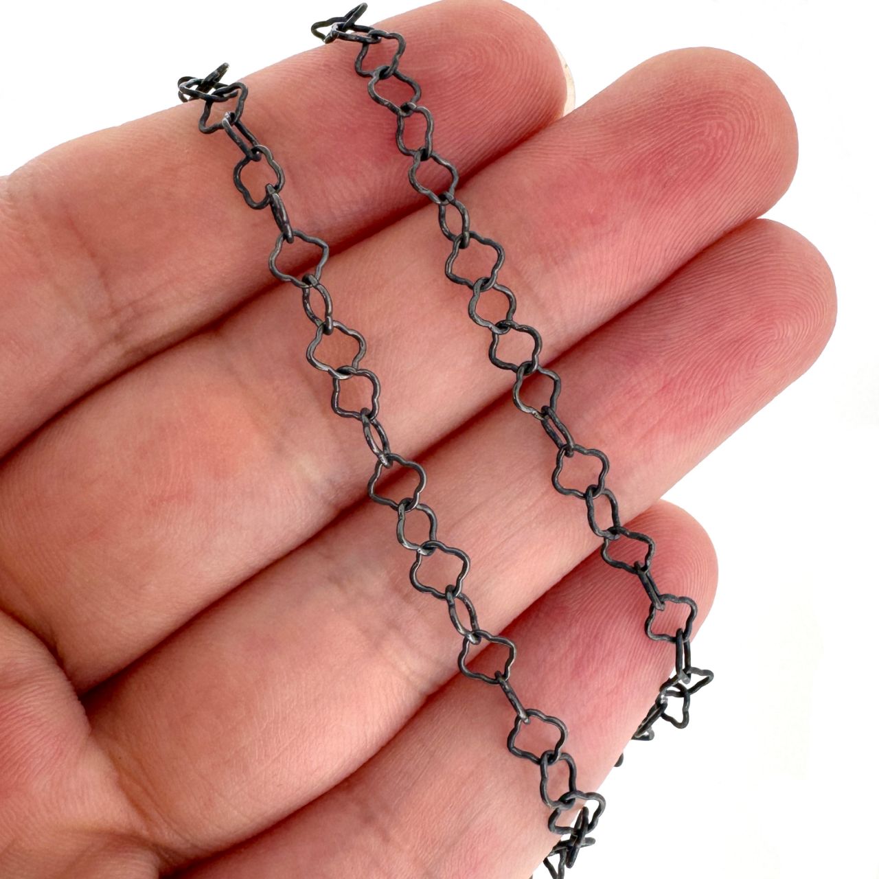 Add to compare list Oxidized 925 Sterling Silver Finished Jewlery Chain - Clover Link Cable Chain SKU : 601112OX Available Lengths: 7" - 36" Log In for Wholesale Prices