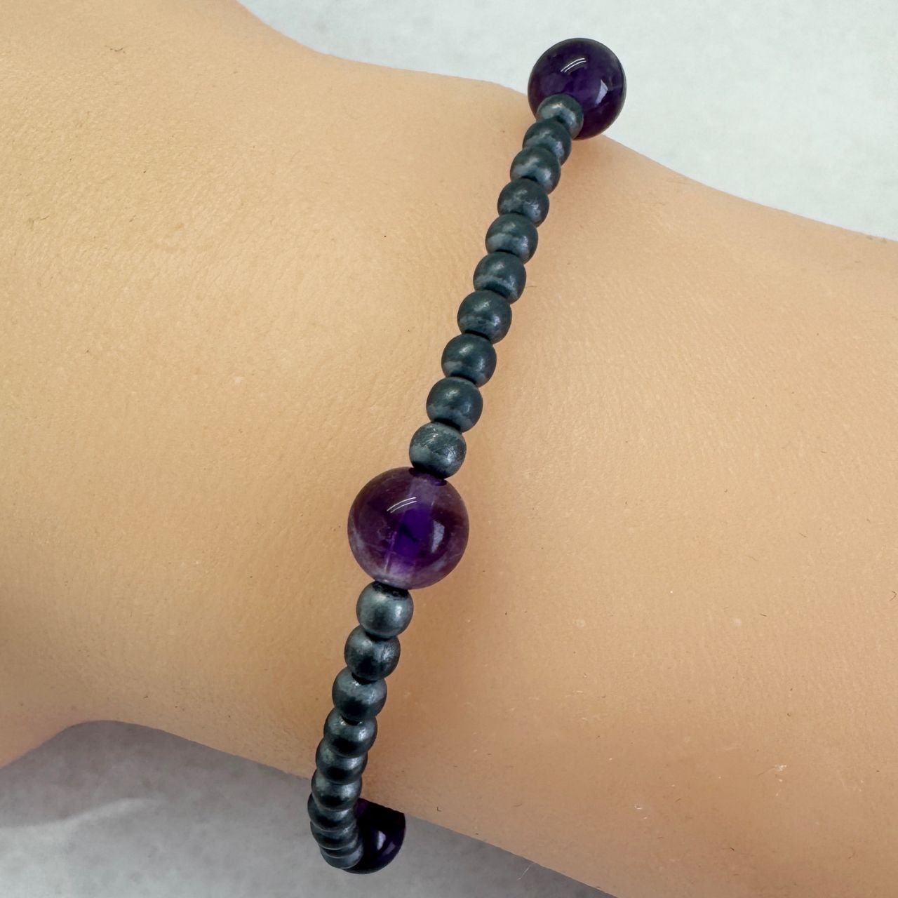 Bead size: 3mm Oxidized Silver beads with 6mm Natural Amethyst