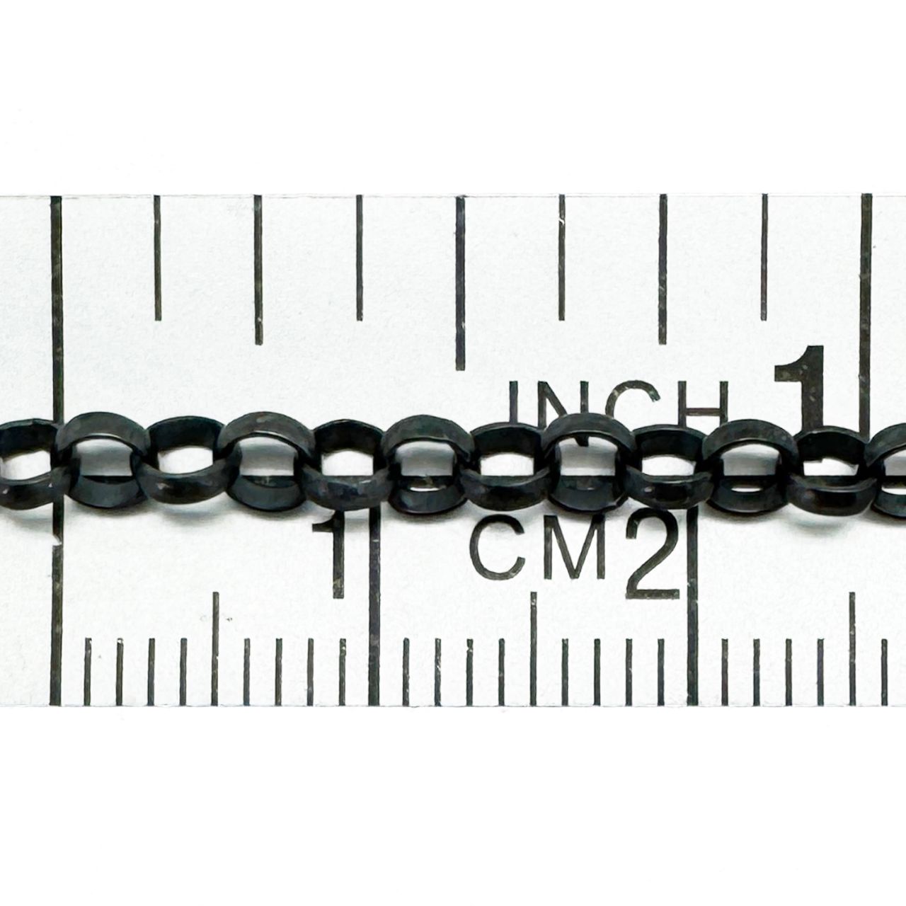 Add to compare list Oxidized Sterling Silver Bulk Chain - 2mm Rolo Chain (sold per foot) SKU : 101005-OX 2mm rolo 17 links per inch Shiny Dark Black Color Log In for Wholesale Prices