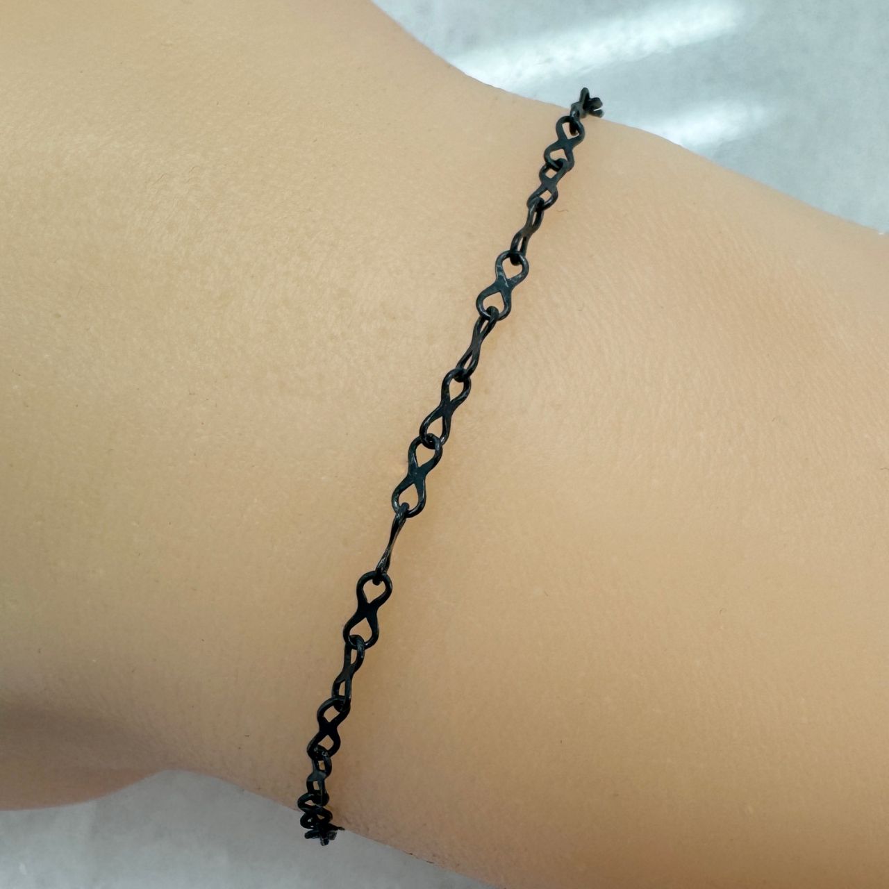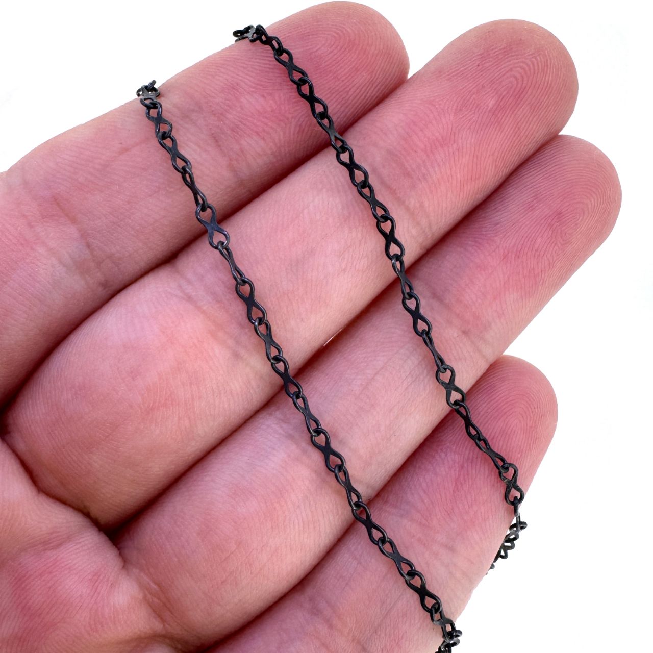Add to compare list Oxidizied 925 Sterling Silver Bulk Chain - 5.3x2.8mm Sunburst Infinity Chain (sold per foot) SKU : 101127OX 5.5 links per inch Shiny Black Color Log In for Wholesale Prices