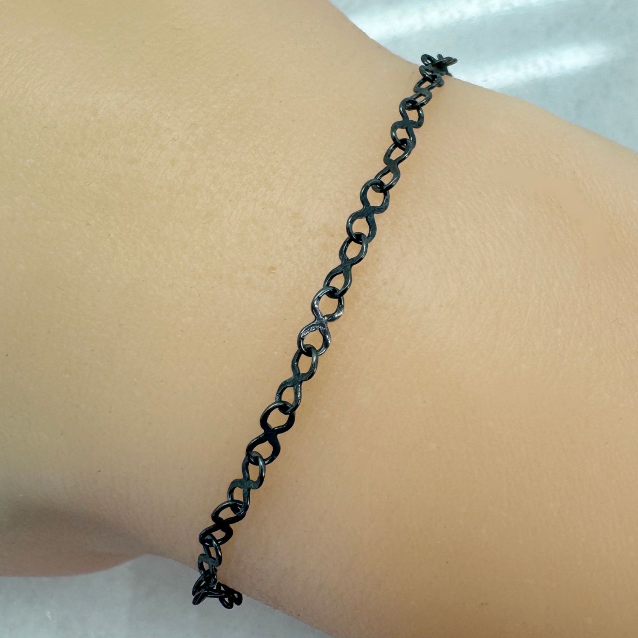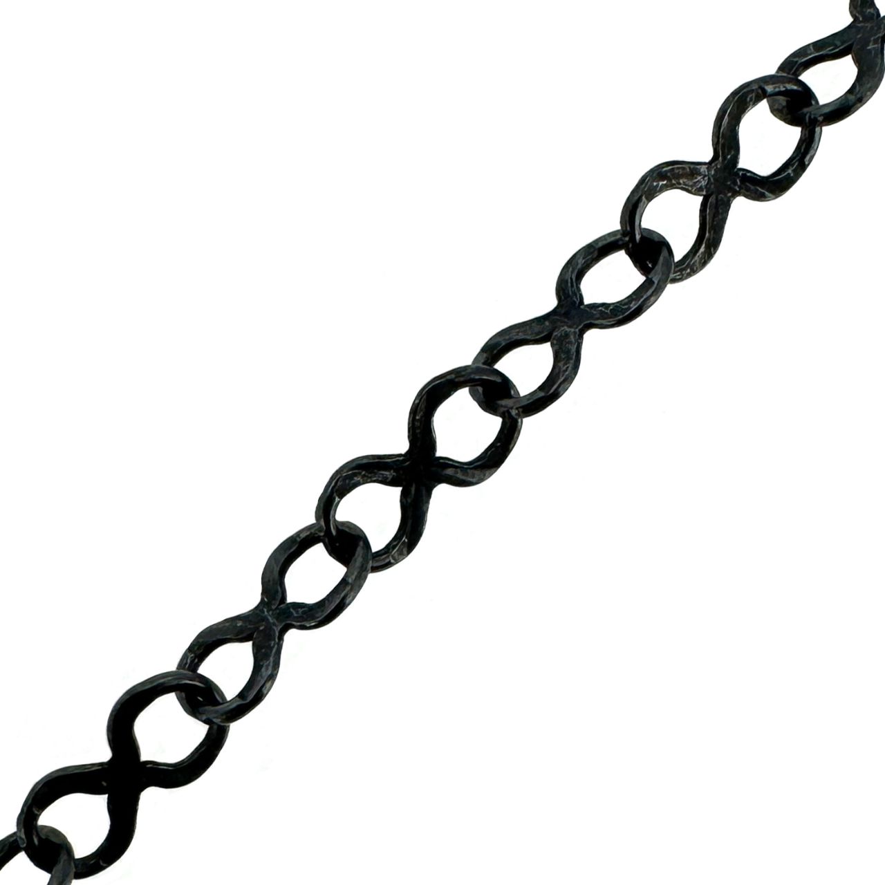 Add to compare list Oxidized 925 Sterling Silver Bulk Chain - 4.5x2mm Plain Infinity Chain (sold per foot) SKU : 101128OX 6 links per inch Shiny Black Color Log In for Wholesale Prices