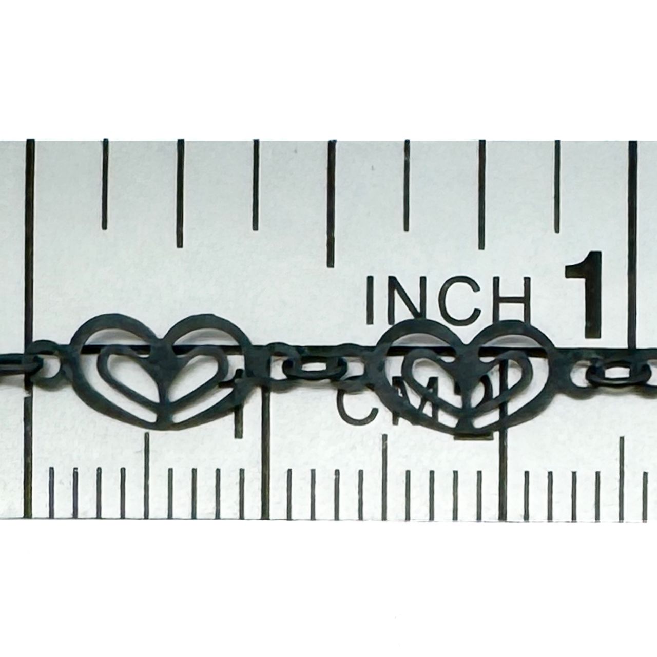 Add to compare list Oxidized 925 Sterling Silver Bulk Chain - 4mm Heart Chain (sold per foot) SKU : 101076OX 4mm x 2.85mm 8 links per inch Log In for Wholesale Prices