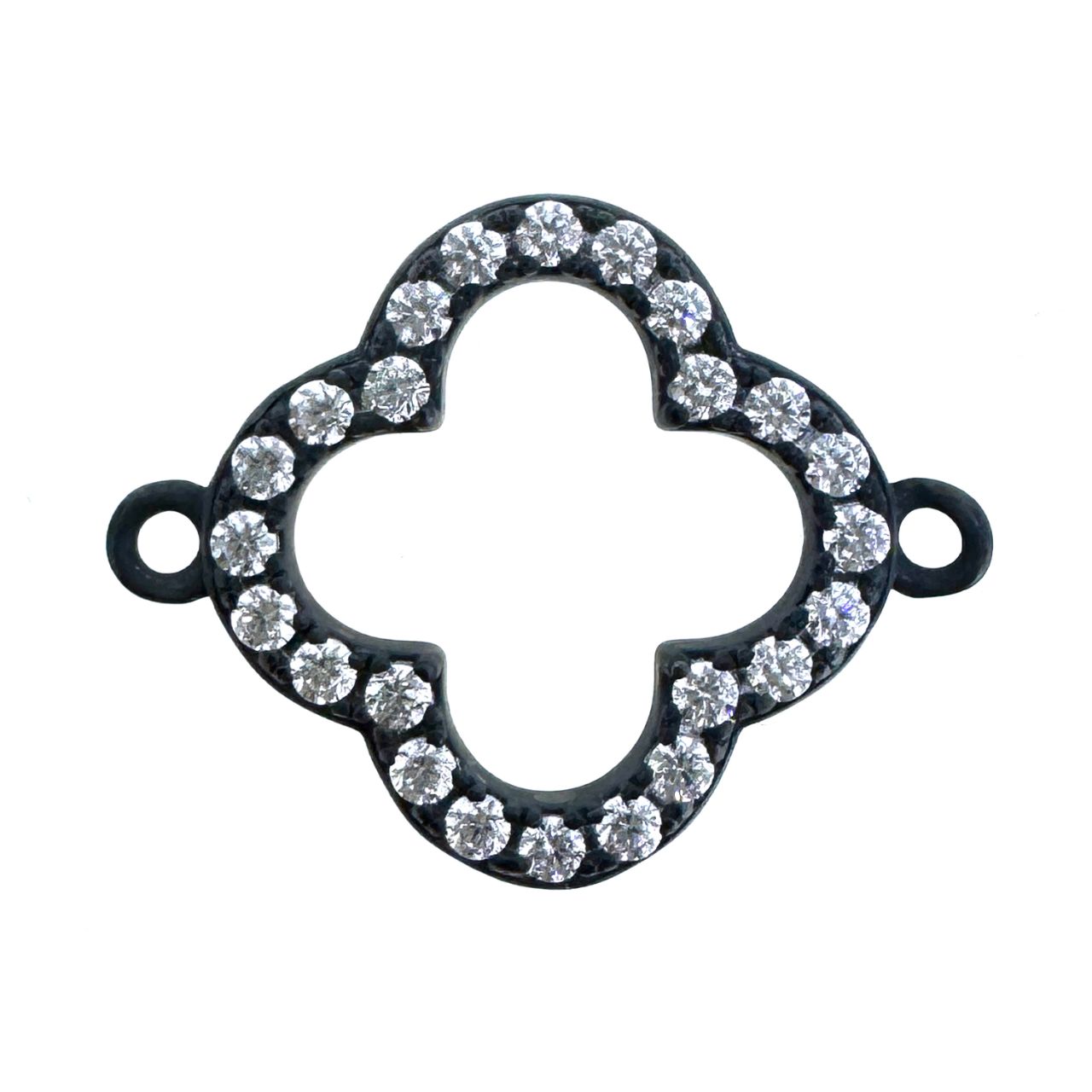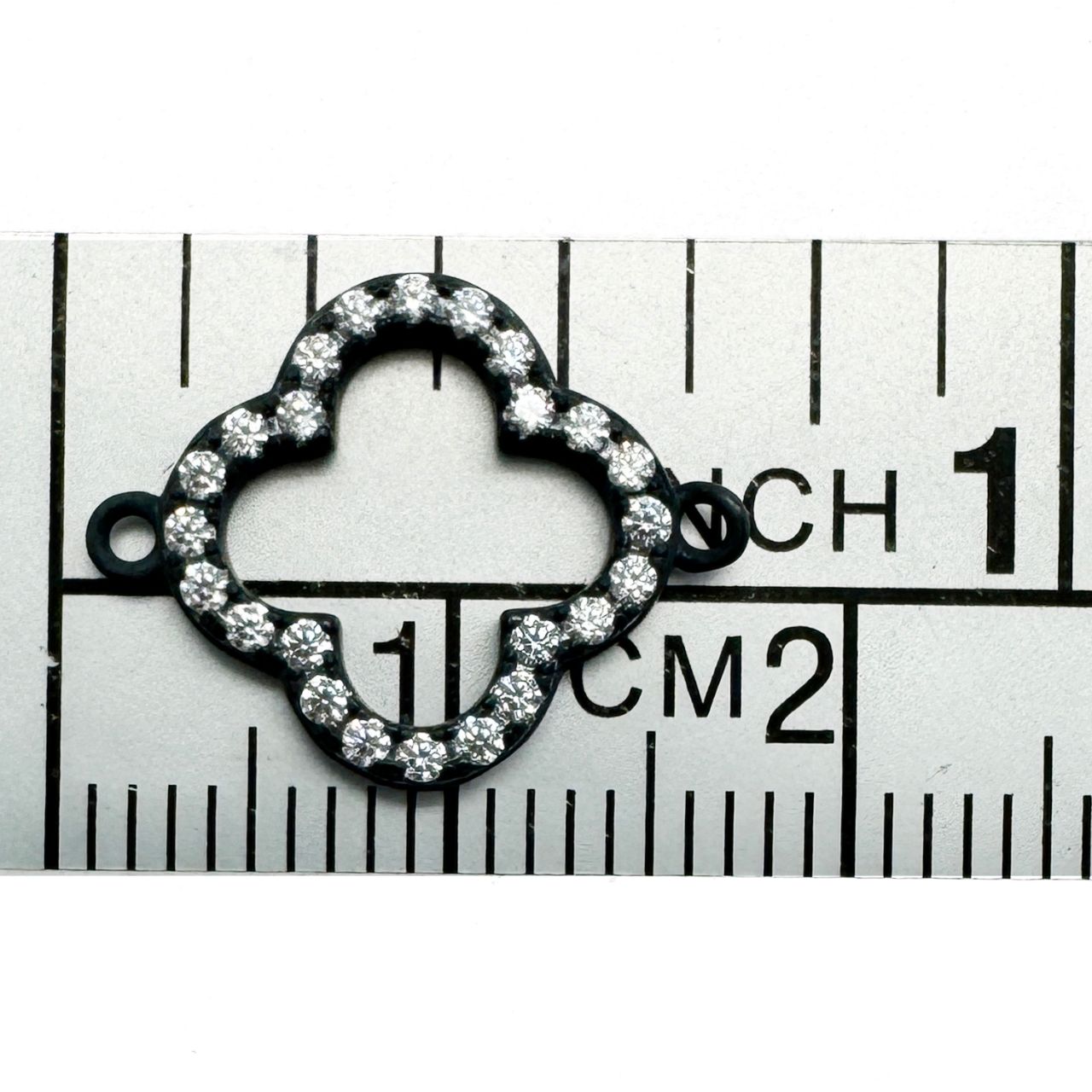 Style: Clover Charm with 24 CZ StonesCharm Size: 13mm, 16.5mm with rings-1.5mm inner diameter; CZ stones are 1mmQuantity: 1 piece.