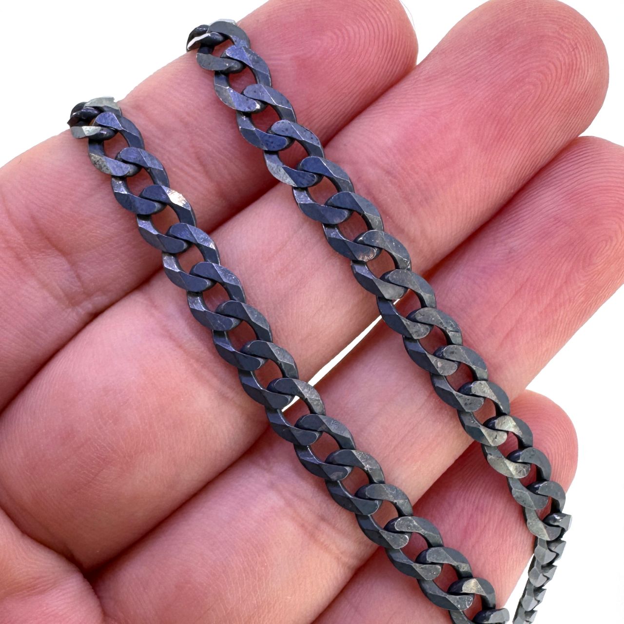 Add to compare list Oxidized 925 Sterling Silver Finished Jewelry Chain - Diamond Cut Flat Cuban Chain SKU : 601105OX Lengths: 7" - 20" Log In for Wholesale Prices