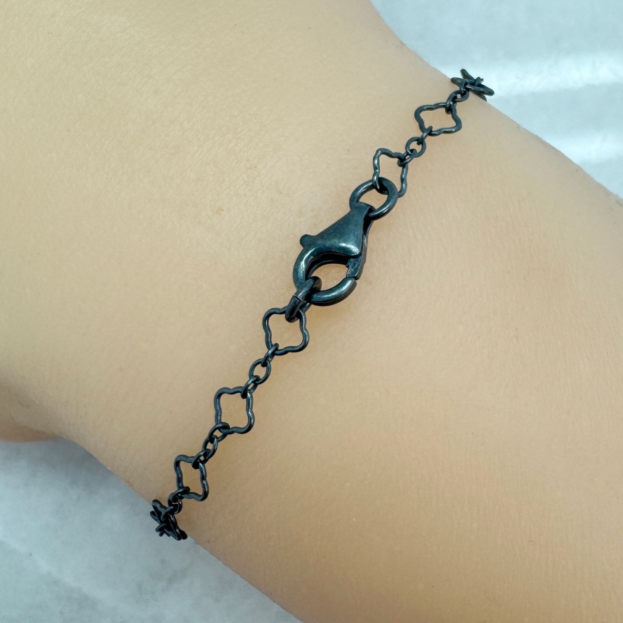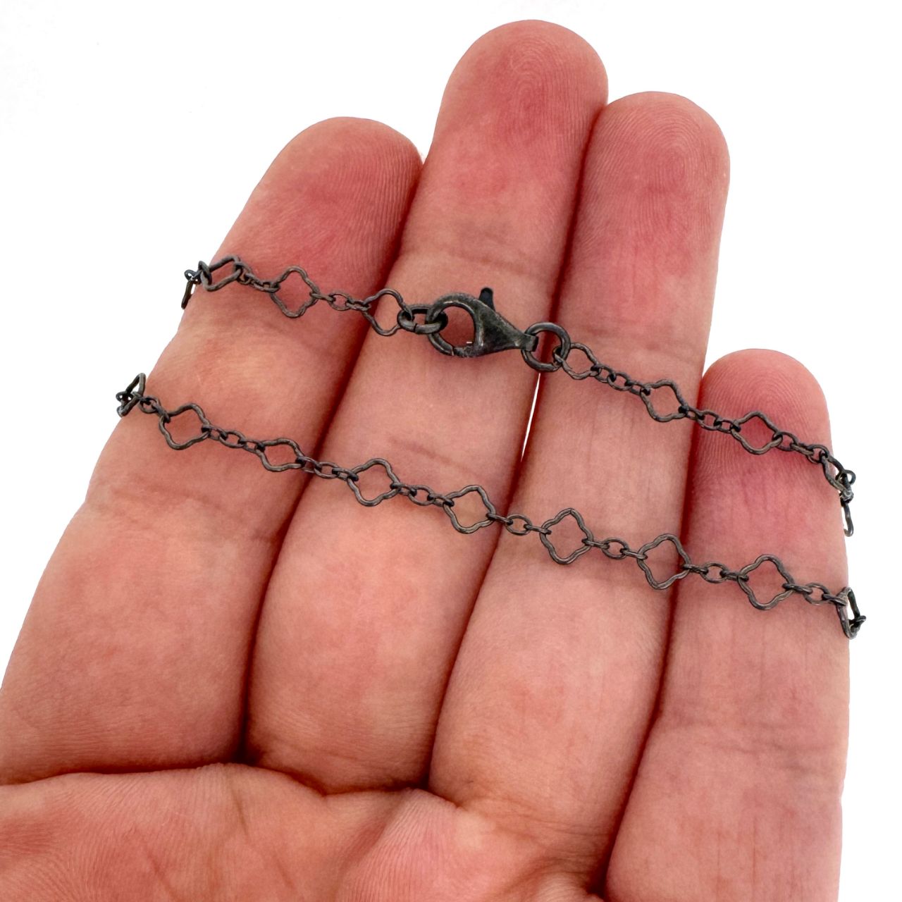Component size: Clover size is 3.5mm; Small round links are 1.7mm