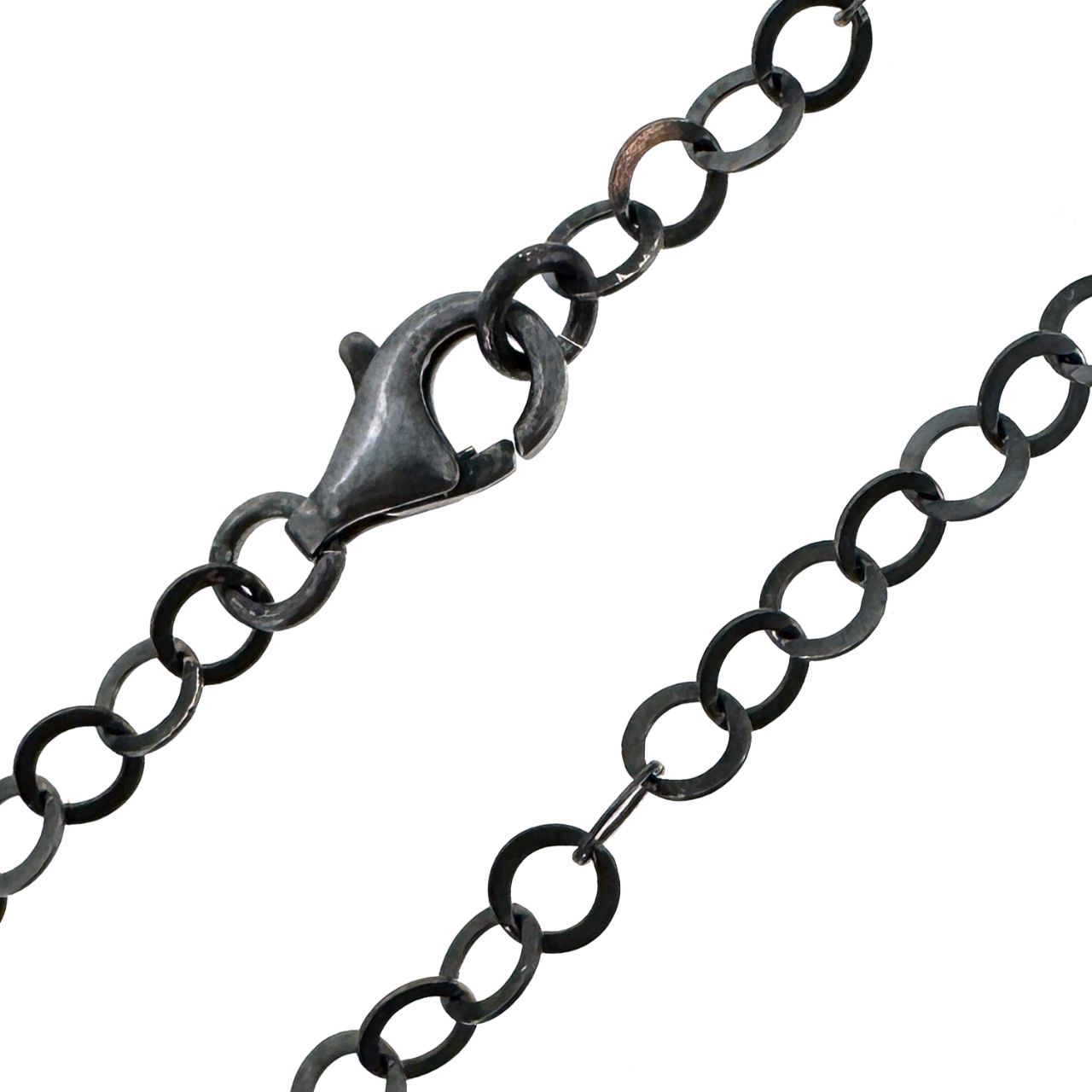 Add to compare list Oxidized 925 Sterling Silver Bulk Chain - 3.5mm Round Flat Cable Chain (sold per foot) SKU : 101015-OX Shiny Dark Black Color 9.5 links per inch Log In for Wholesale Prices