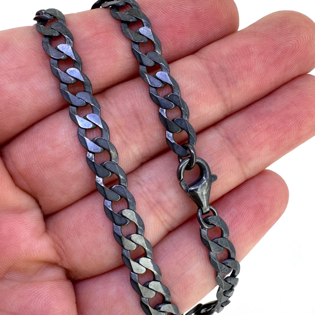 Add to compare list Oxidized 925 Sterling Silver Finished Jewelry Chain - Diamond Cut Flat Cuban Chain SKU : 601105OX Lengths: 7" - 20" Log In for Wholesale Prices