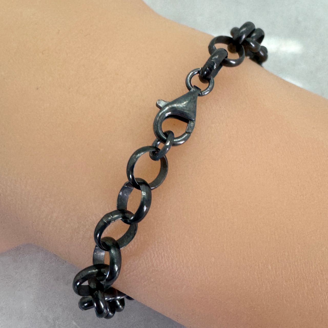 Add to compare list Dark Oxidized Sterling Silver Finished Chain - 3.5mm Diamond Cut Rolo Chain SKU : 601059-OX Lengths: 7" - 36" Perfect for Charm Bracelets! Log In for Wholesale Prices