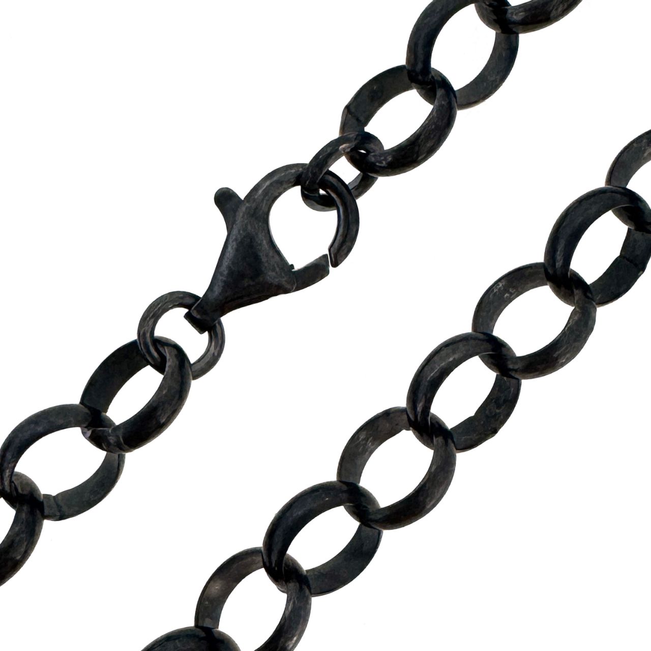 Add to compare list Oxidized 925 Sterling Silver Finished Chain - Chunky Flat Oval Rolo Chain SKU : 601004OX Lengths: 7" - 36" Log In for Wholesale Prices