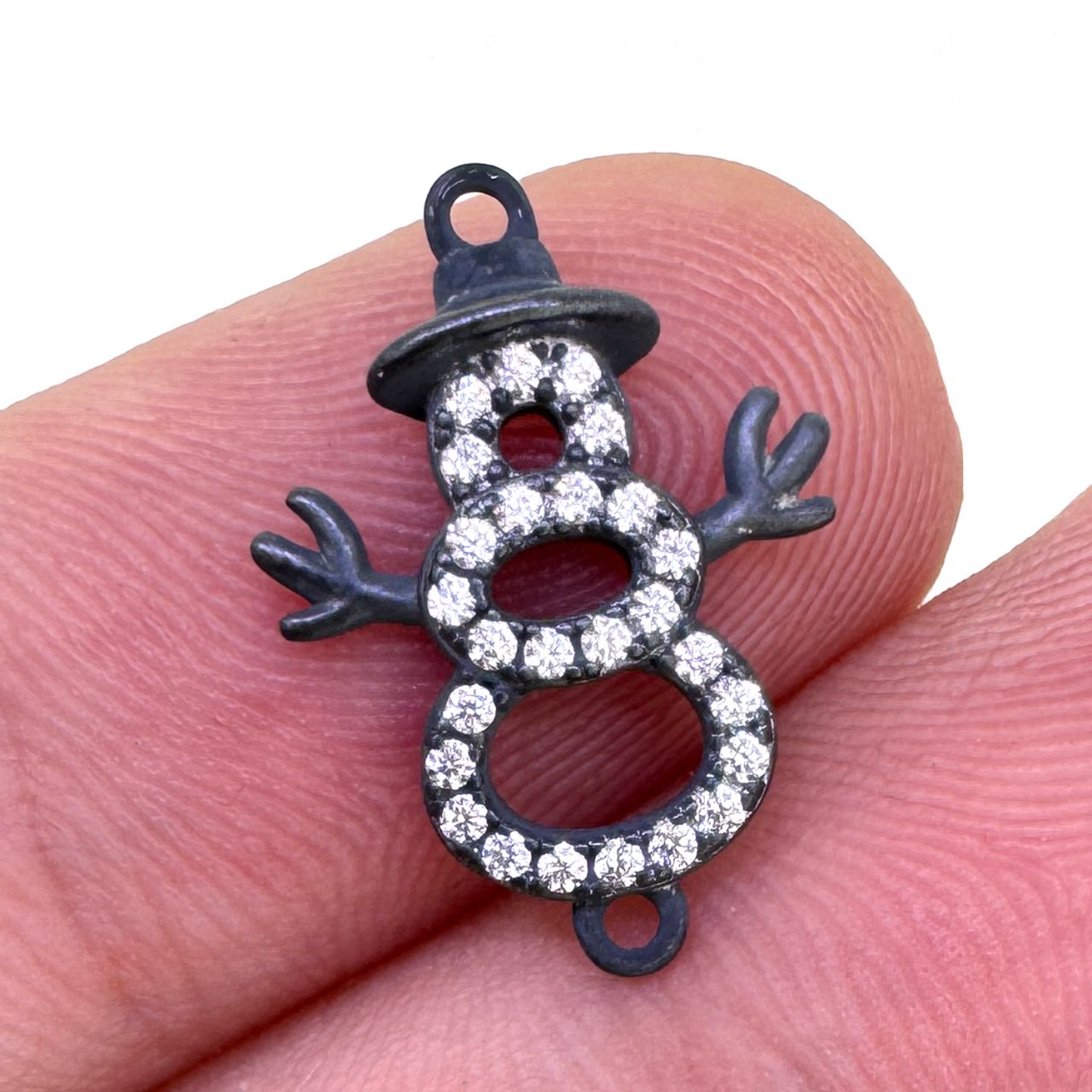 Style: Snowman Charm with 25 CZ StonesCharm Size: 13.5mm, 17mm with rings-1.5mm inner diameter, 12mm width; CZ stones are 1mmQuantity: 1 piece.
