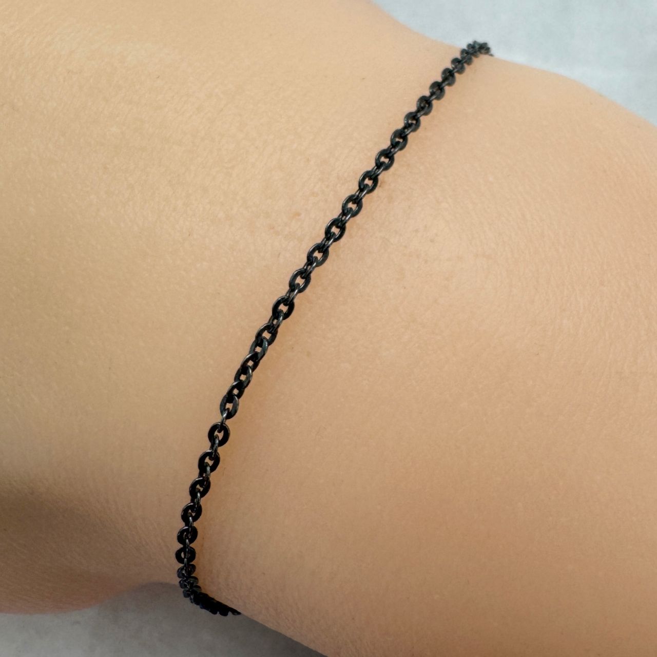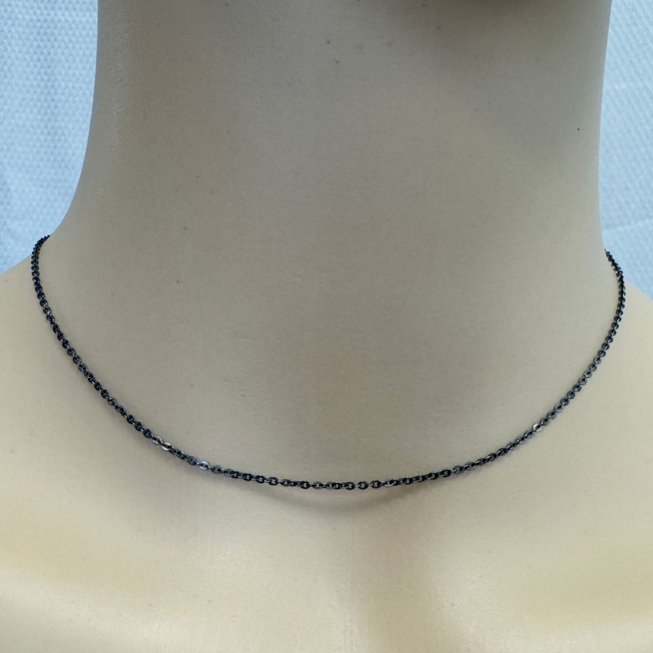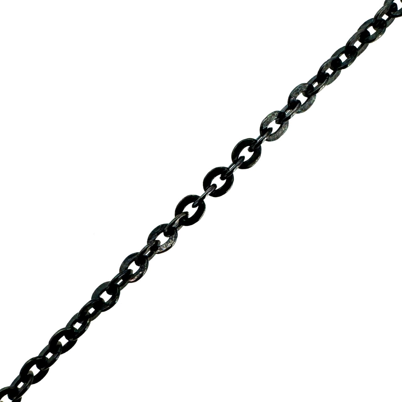 Add to compare list Oxidized Sterling Silver Finished Jewelry Chain - Solid Flat Oval Cable Chain SKU : 601029OX Lengths: 7" - 36", link is 1.7mm by 1.3mm Log In for Wholesale Prices