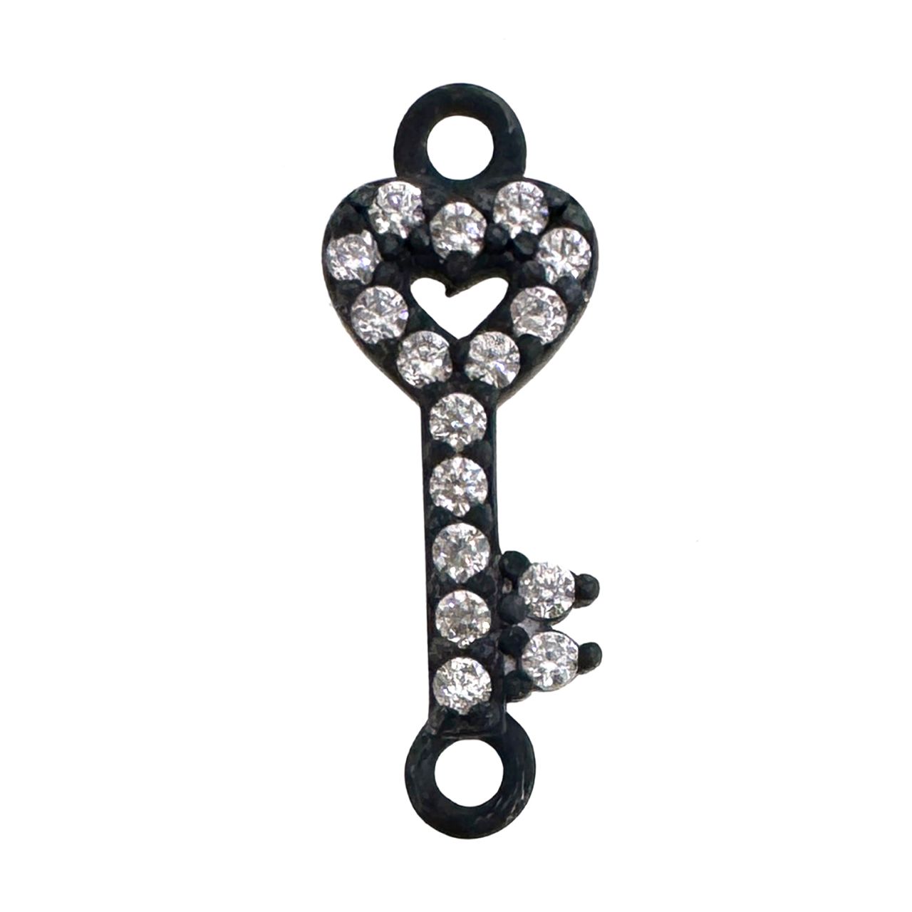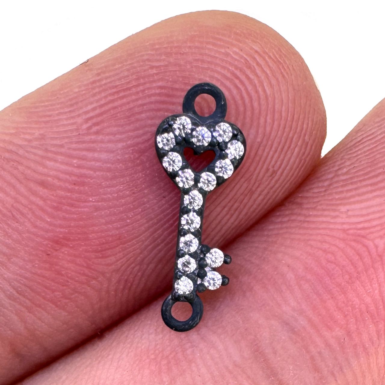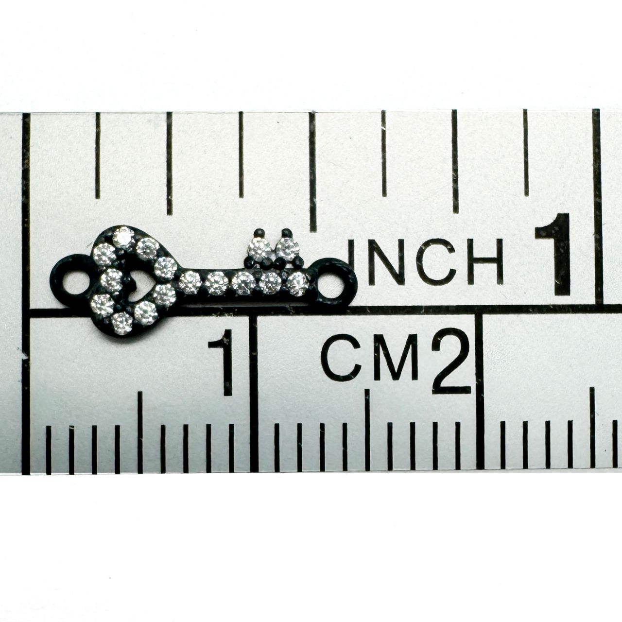 Style: Key Charm with 16 CZ StonesCharm Size: 13.5mm x 5mm Wide; Rings are 2.5mm, 1mm inner diameter Quantity: 1 piece.