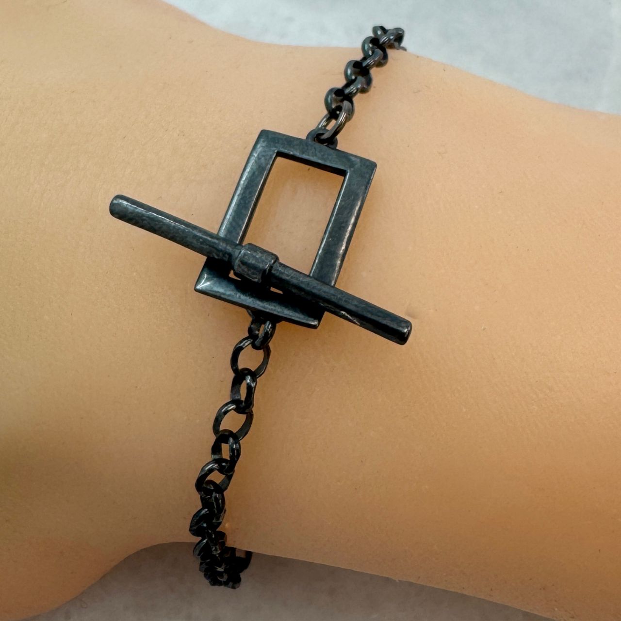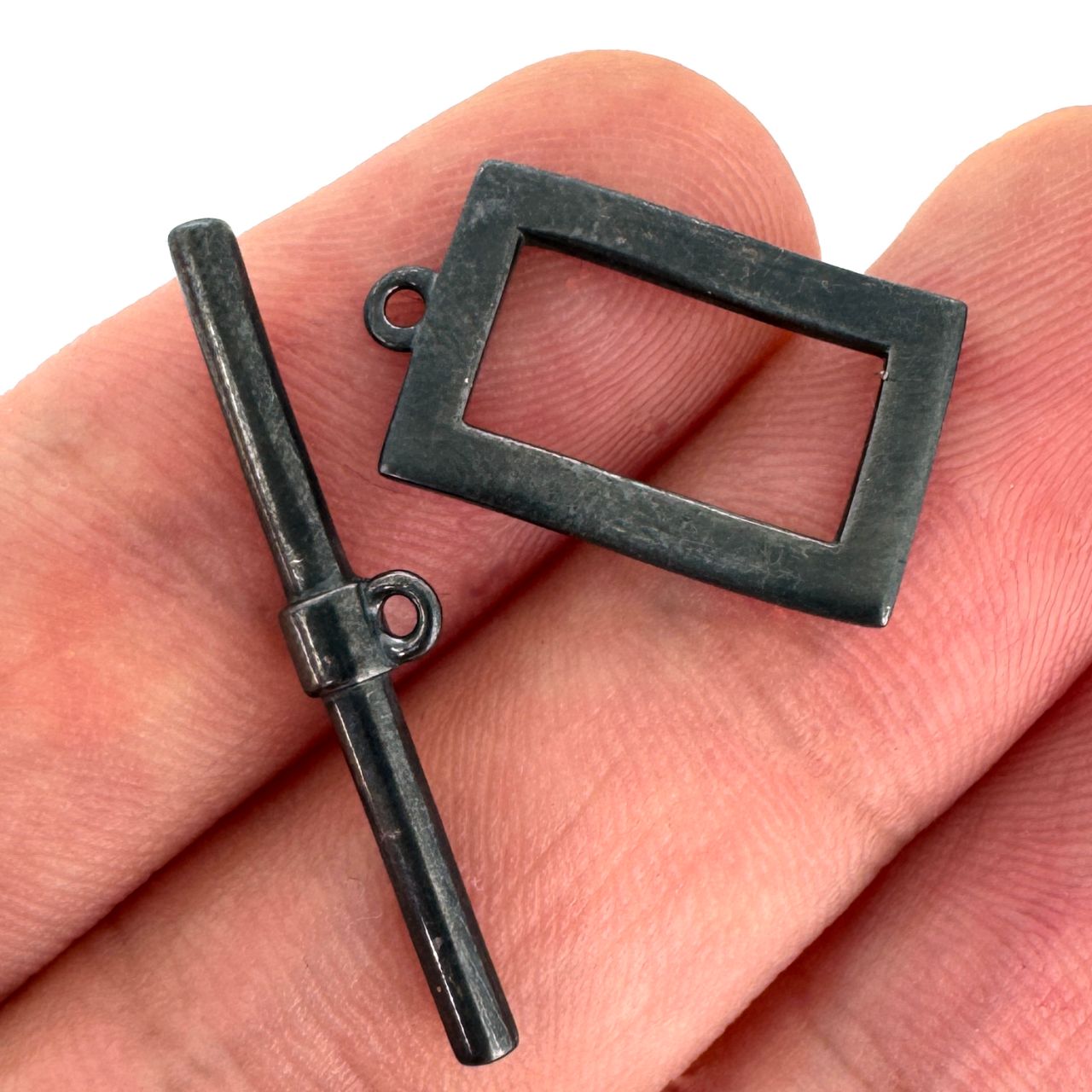 Material: Solid Genuine .925 Sterling Silver Shape: Wavy Rectangle shape toggle claspMeasurement: Bar is 26mm,2mm thickness; Rectangle is approximately 10x17.7mm with ring - 15.6mm without. Rings are 2.7mm Outer Diameter, 1.2mm Inner.