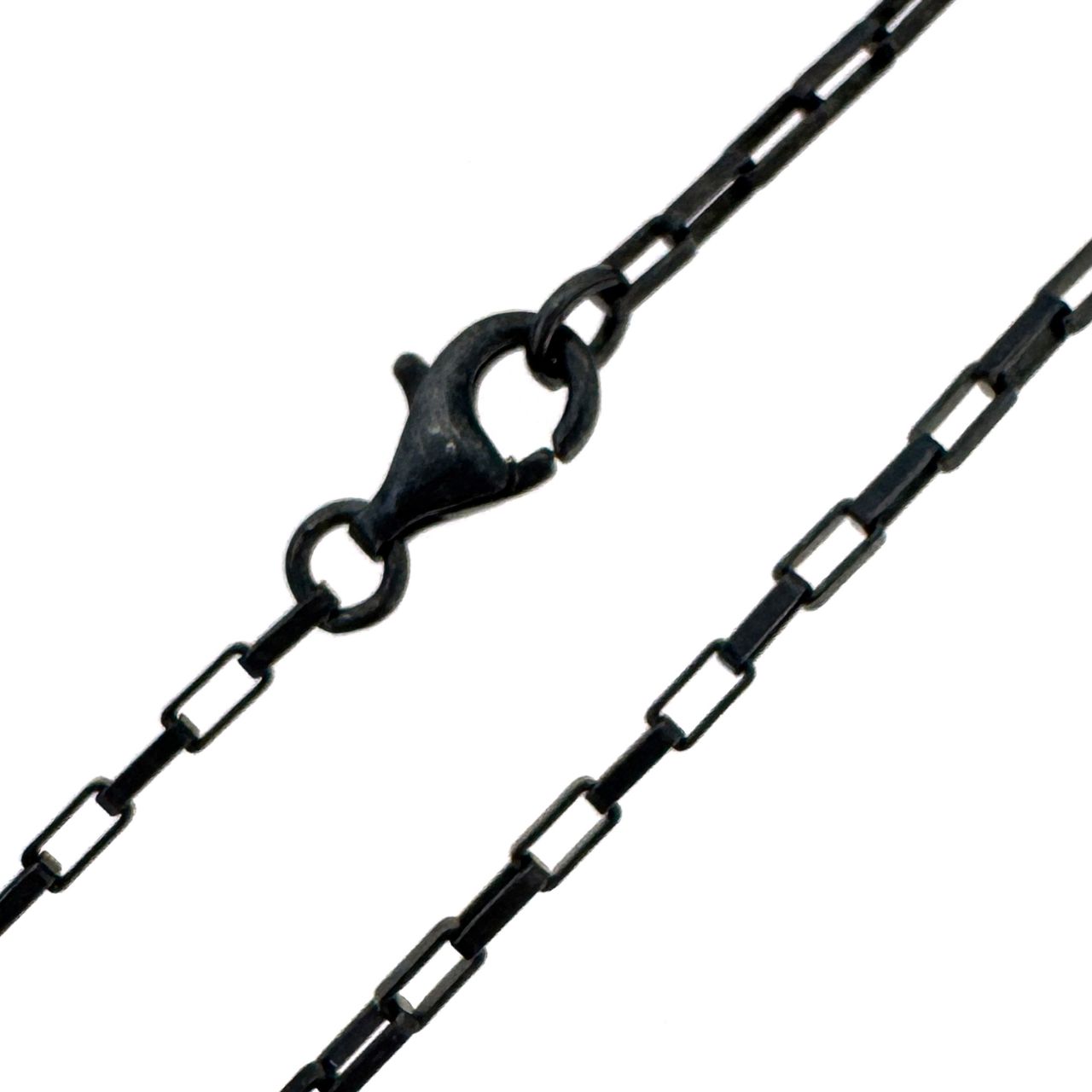Add to compare list Oxidized Sterling Silver Finished Chain - Small Box Chain SKU : 601011-OX Lengths: 7" - 36" Links are 2.9x1.3mm Log In for Wholesale Prices