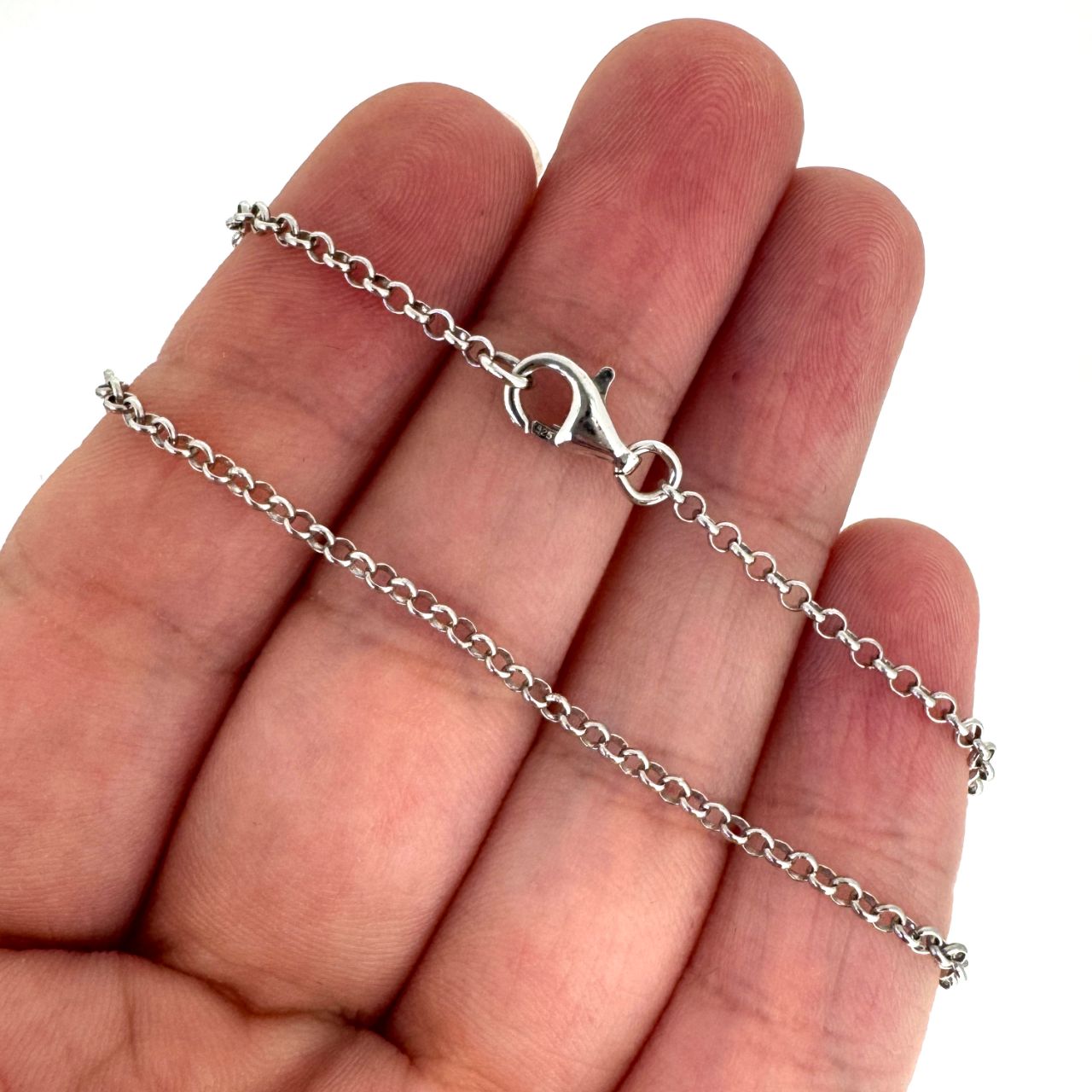 Add to compare list 925 Sterling Silver Finished Jewelry Chain - 2mm Rolo Chain SKU : 601005 Lengths: 16- 36" 2mm rolo link Log In for Wholesale Prices