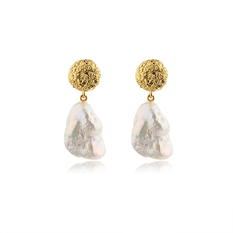 Style: Textured Round Studs with Baroque Pearls - Butterfly Backs