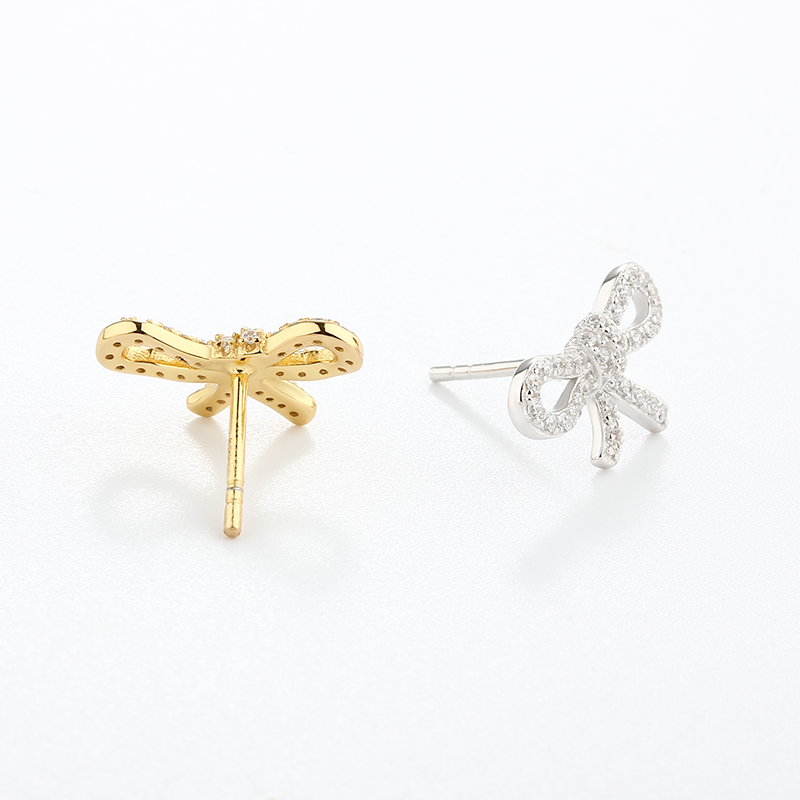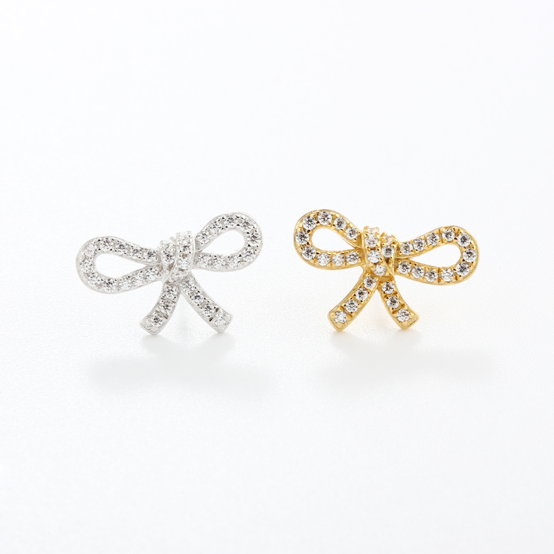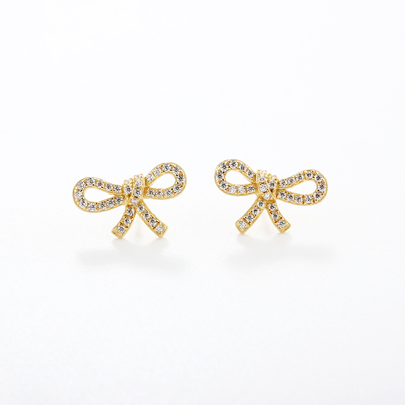 Style: Bow Shaped Studs with CZ Stones - Butterfly Backs