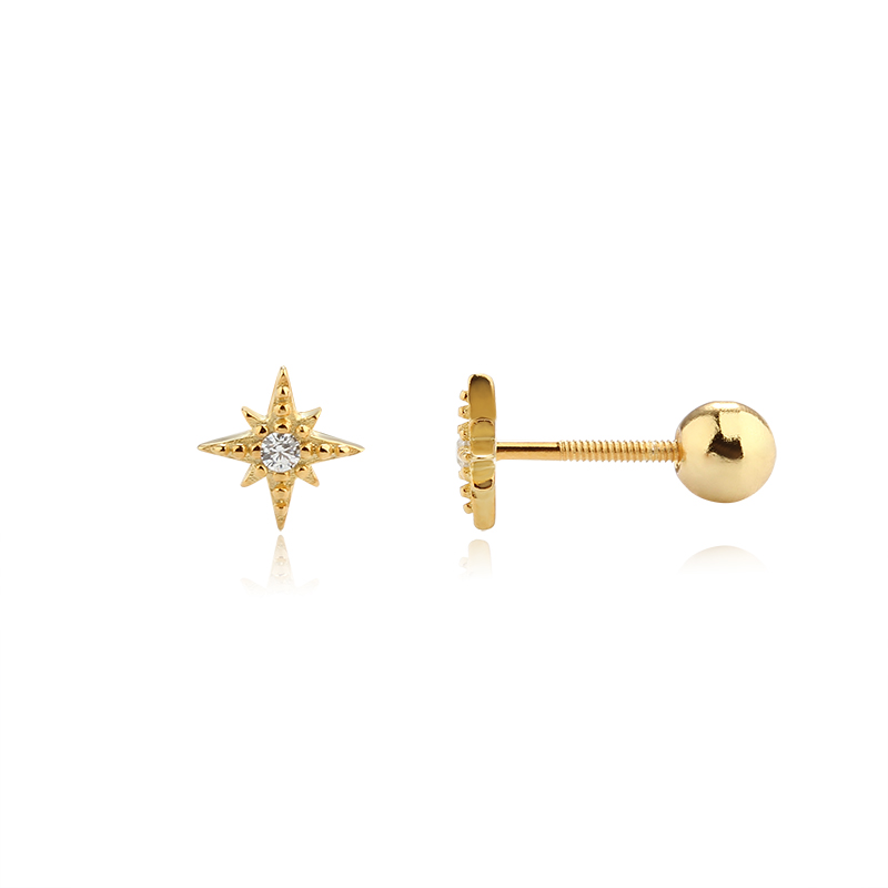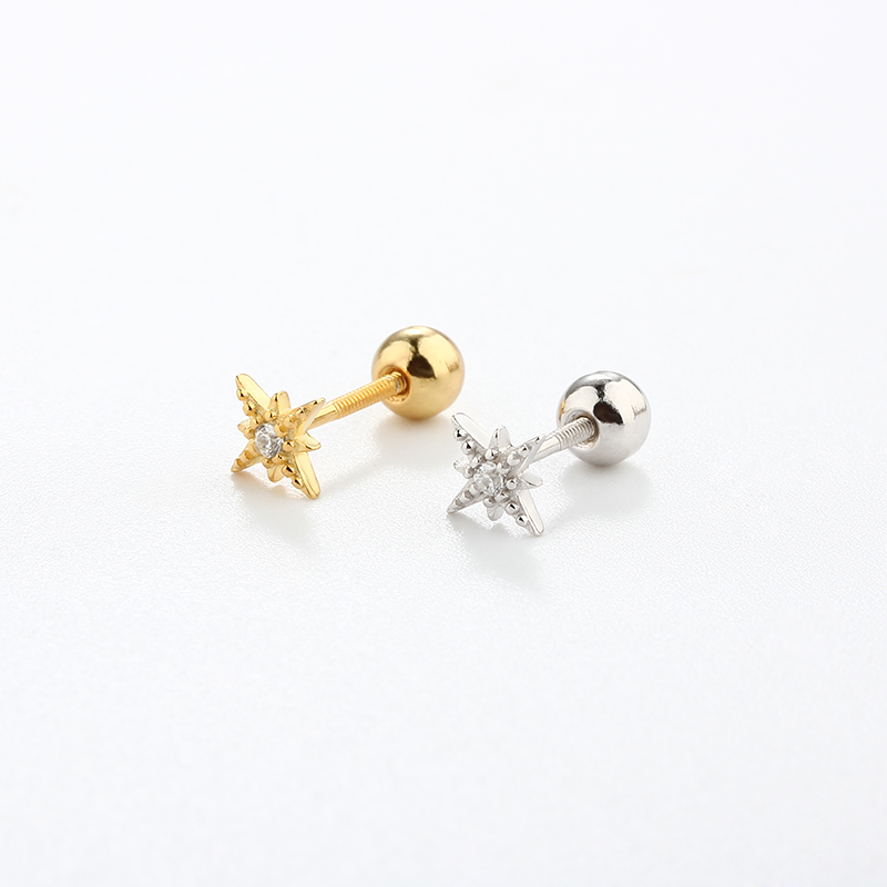 Style: North Star Shaped Studs With CZ Stone - Screwbacks