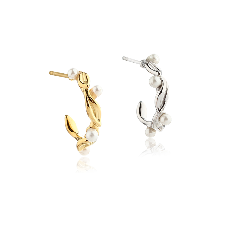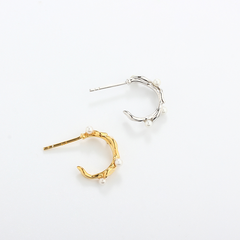Style: Textured Hald Hoops With 4 Mother of Pearls - Butterfly Backs