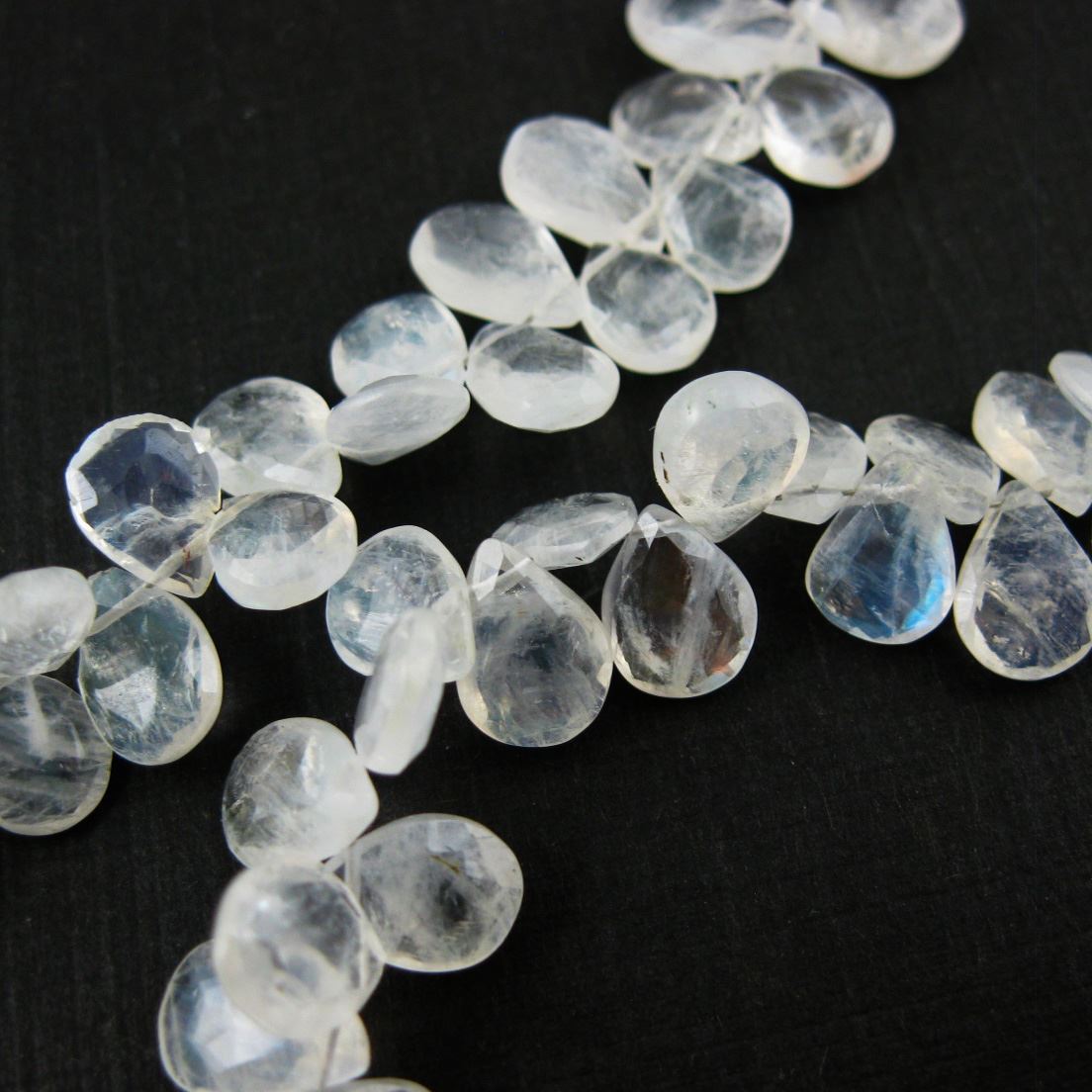 Faceted Tear Drop Gemstone Pear ShapeStone: Rainbow MoonstoneGrade: AA - Clear stone, even cut with lots of blue flash.
