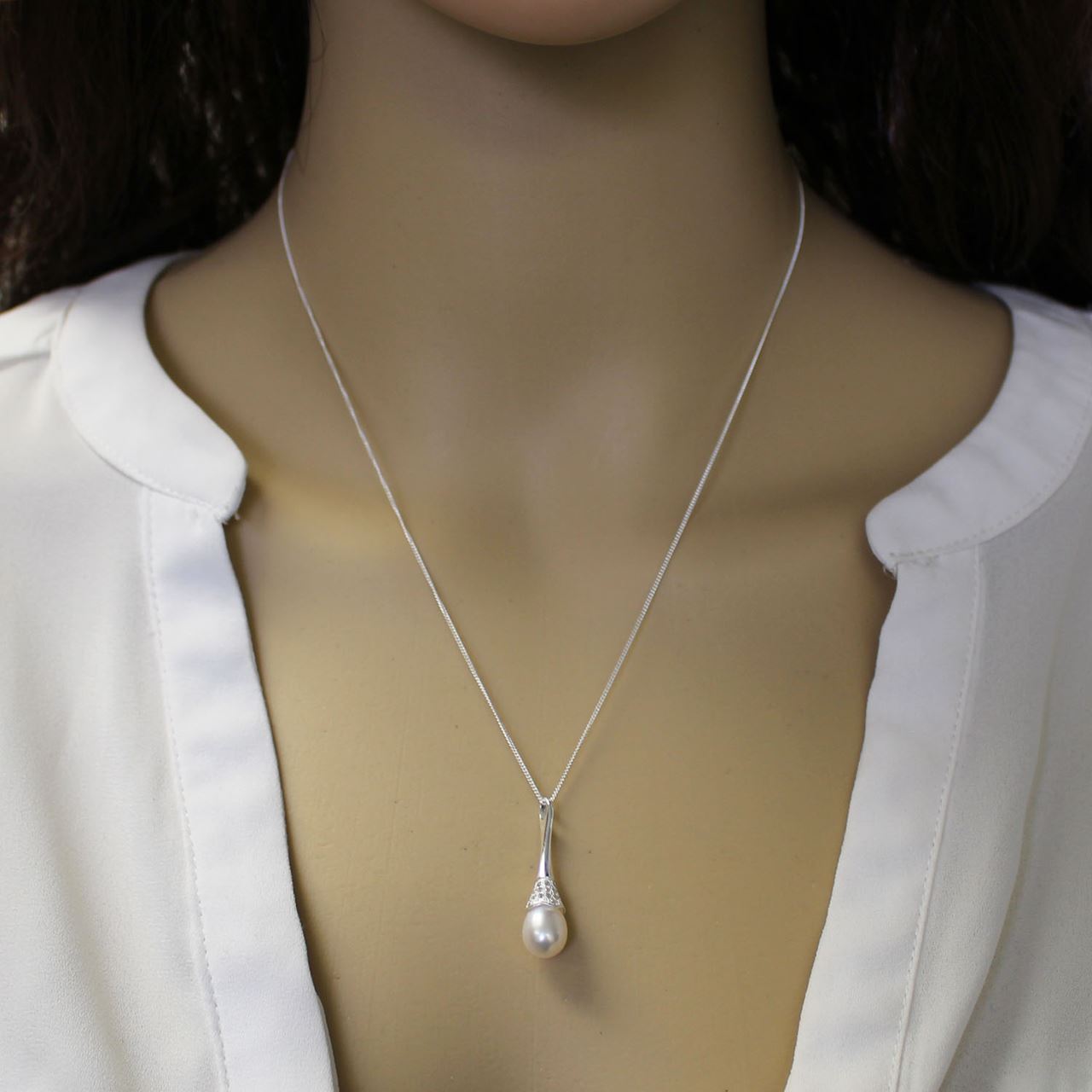 Material: 925 Sterling Silver, cz stonesPearls: Teardrop Shape - 8*10mmPendant Length: 30mmNecklace Length: 18"