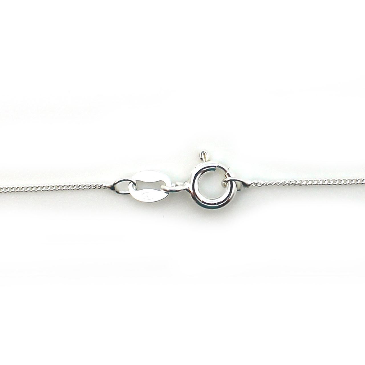 A white freshwater pearl sits below a sterling silver and cz stone decorated long bell-shaped bail pendant on a delicate silver chain.