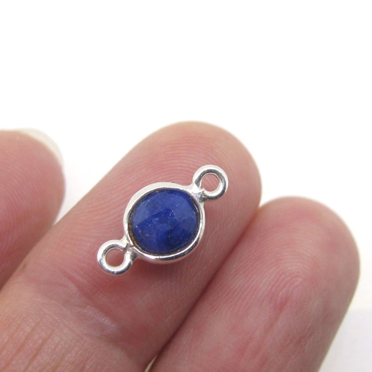 Stone: Blue Sapphire Frame Material: Solid Genuine .925 Sterling Silver. Shape: Faceted coin on both sides Measurement: 13mm with both rings, stone is 6mm