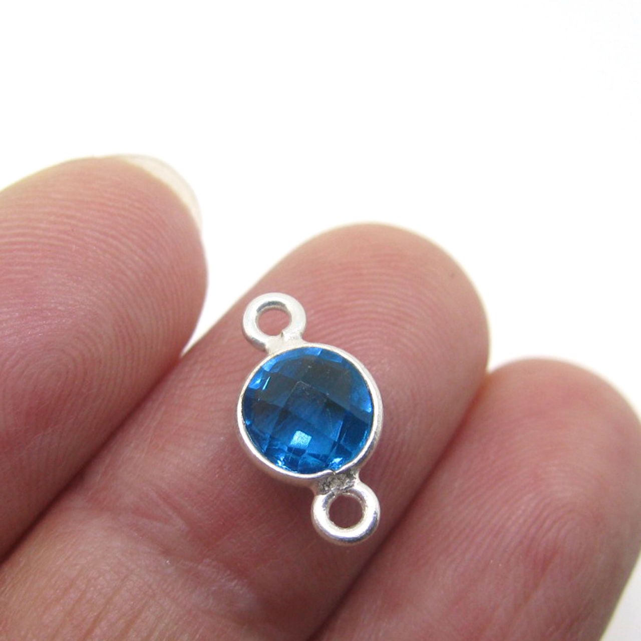 Stone: Blue TopazFrame Material: Solid Genuine .925 Sterling Silver. Shape: Faceted coin on both sides Measurement: 13mm with both rings, stone is 6mm