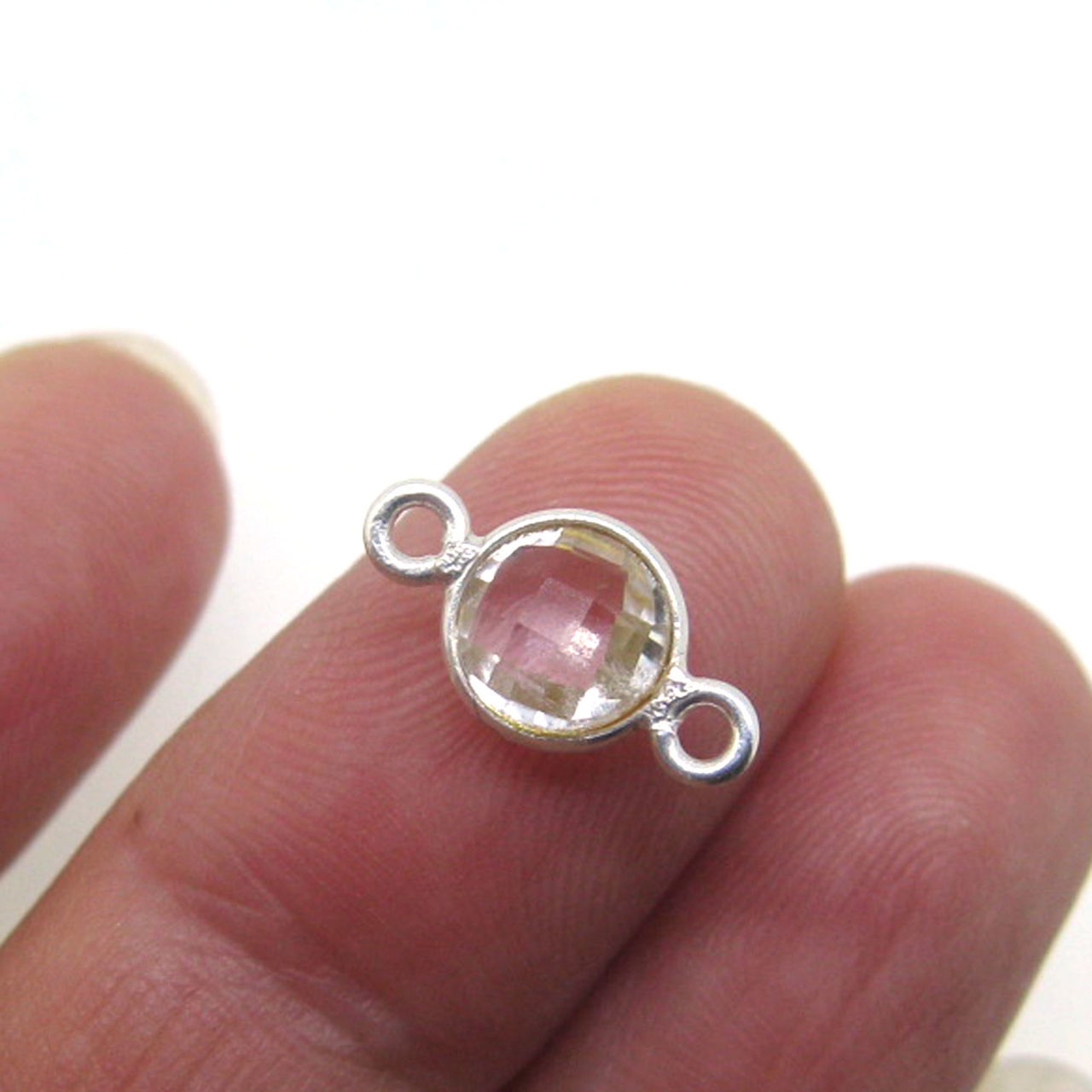 Stone: Cystal QuartzFrame Material: Solid Genuine .925 Sterling Silver. Shape: Faceted coin on both sides Measurement: 13mm with both rings, stone is 6mm