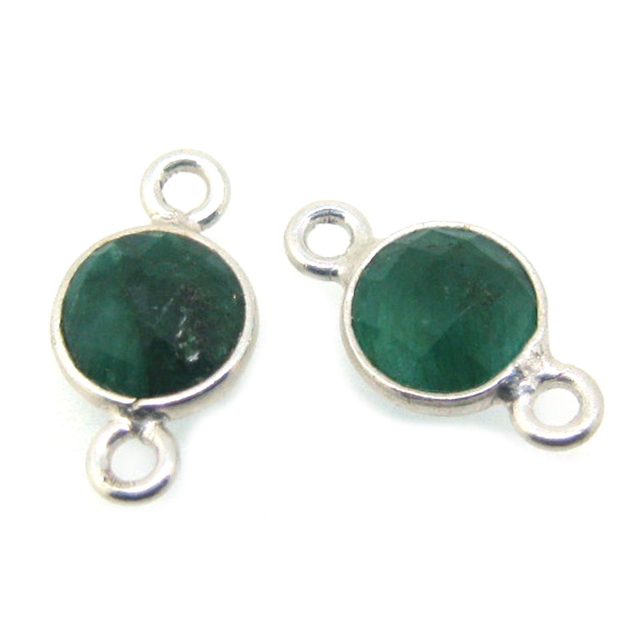 Stone: EmeraldFrame Material: Solid Genuine .925 Sterling Silver. Shape: Faceted coin on both sides Measurement: 13mm with both rings, stone is 6mm