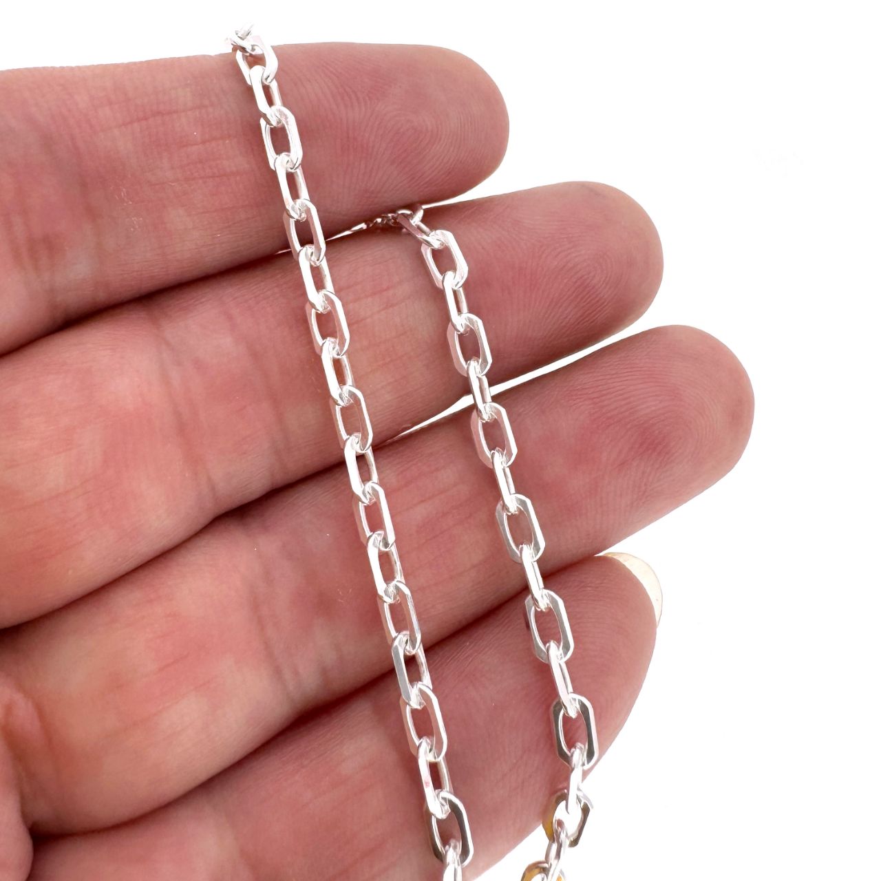 Add to compare list Sterling Silver Finished Chain- 5x3mm Diamond Cut Box chain SKU : 601103 Lengths: 7" - 24" Log In for Wholesale Prices