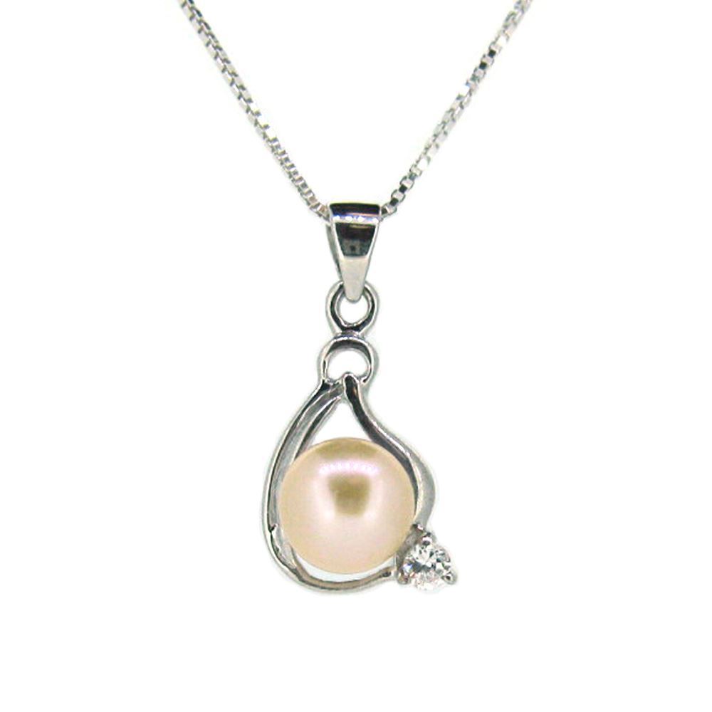 A round cream freshwater pearl sits inside a sterling silver teardrop pendant with tiny cz stone at its side. This necklace is the perfect accessory for any bridal party or the perfect birthday gift, especially for June birthdays.