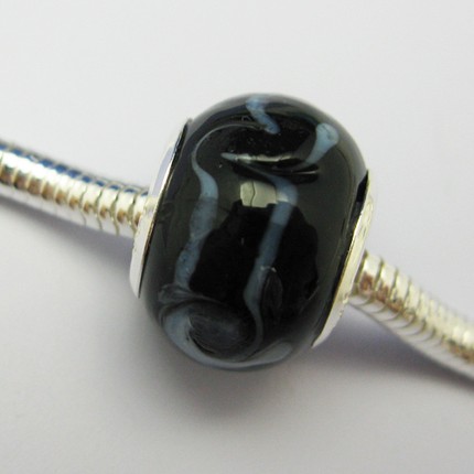 This listing is for 1 piece of sterling silver,pottery,smooth donut shape pandora style bead with colorful design.