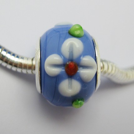 This listing is for 1 piece of sterling silver,pottery,smooth donut shape pandora style bead with colorful design. Size : 10mm L, 15mm W. Approximate hole size: 5mm. Material in middle: 925 sterling silver.