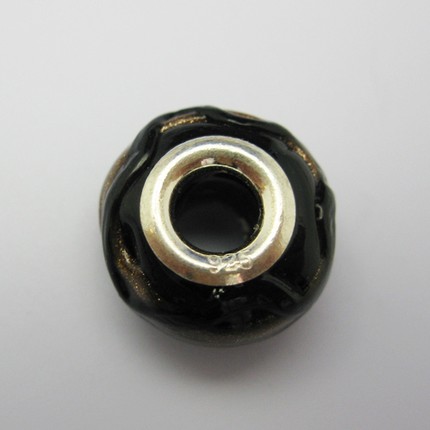 This listing is for 1 piece of sterling silver,glass,smooth donut shape pandora style bead with colorful design.