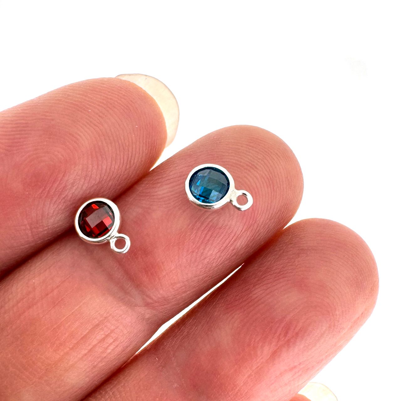 Add to compare list Sterling Silver Fancy Bezel Birthstone Charms- 6mm Tiny Round Charms with Double Sided CZ Stone Grade AAA SKU : 201349 Stone looks the same from front and back, perfect for necklace and bracelet Log In for Wholesale Prices