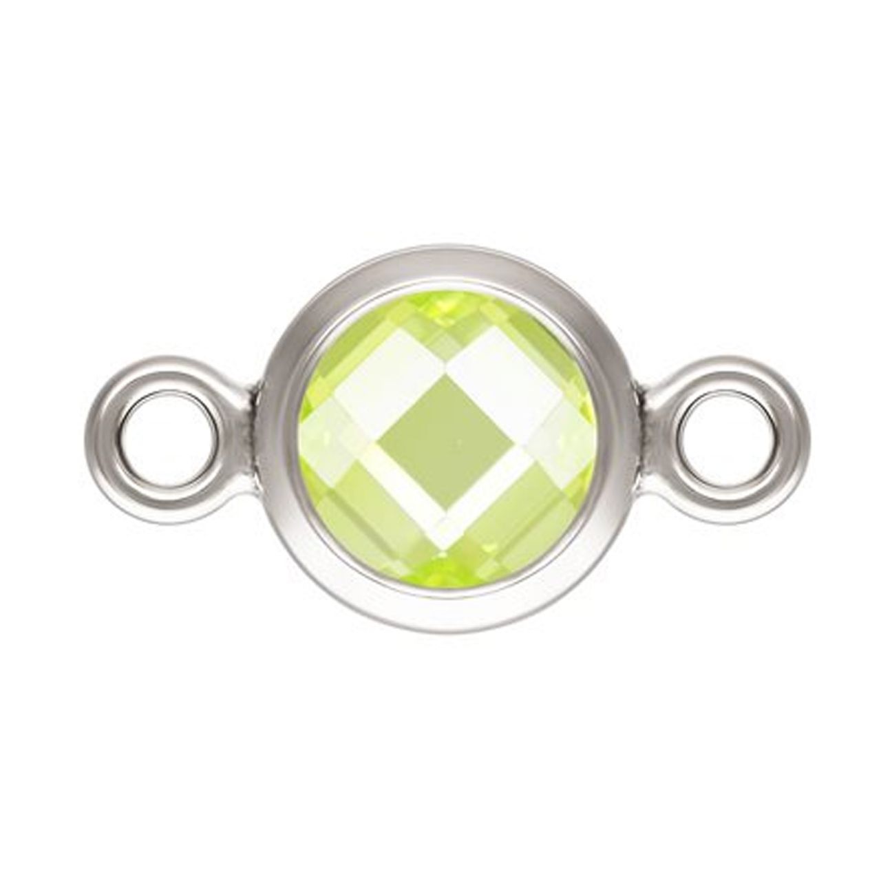 Best Seller Add to compare list Sterling Silver Fancy Bezel Birthstone Connector-Tiny Round Connector with Double Sided CZ Stone Grade AAA -4mm SKU : 201330 Stone looks the same from front and back, perfect for necklace and bracelet Log In for Wholesale Prices