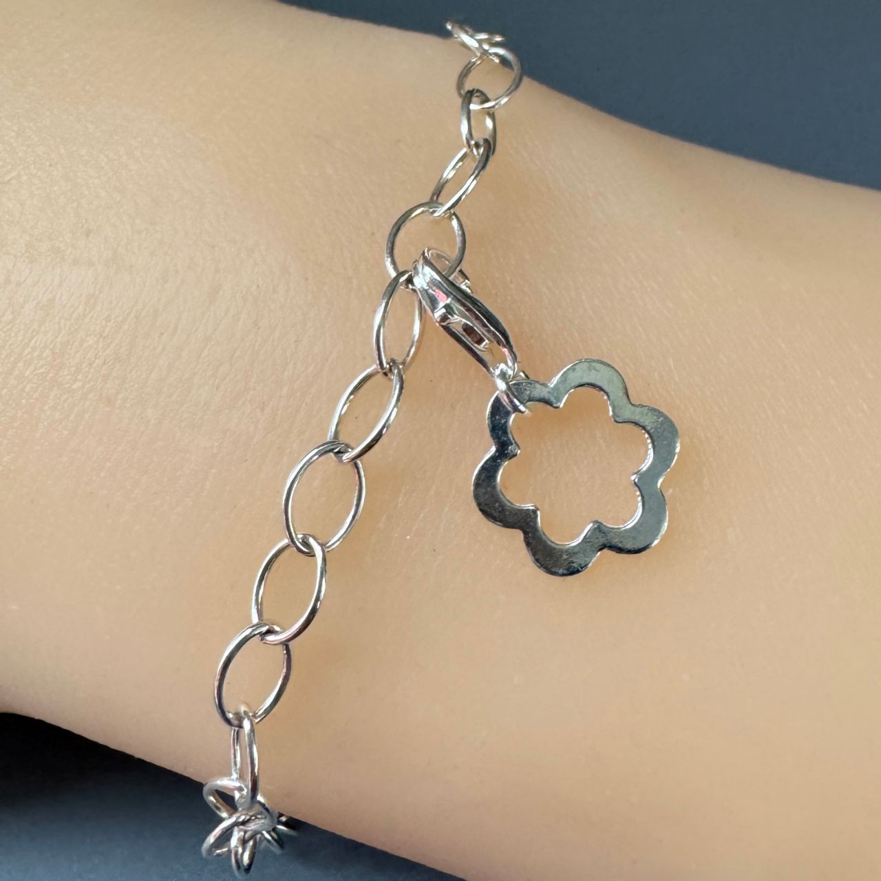Material: 925 Sterling silver Shape: Flower charm with an 8mm lobster claspNOTES: Pictures show the shape of the item, for actual size please see the measurement. Listing price is for 3 pieces.