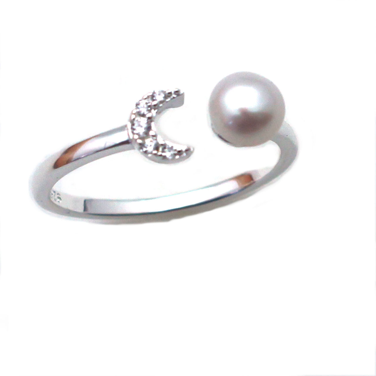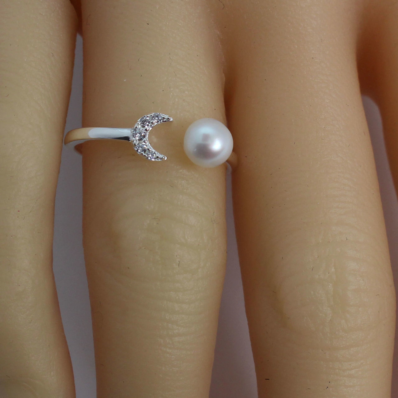 Style: Freshwater Pearl with Moon Open Ring - Adjustable from size 7