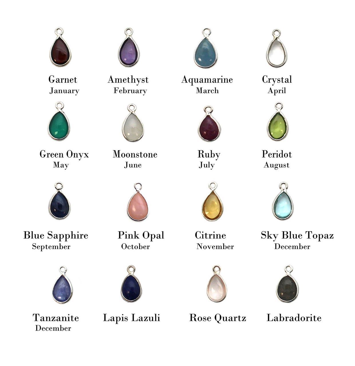 Natural Gemstone: Choose Gemstone in Teardrop Shape (7mm wide, 12.5mm long, stone size is 9x6mm)