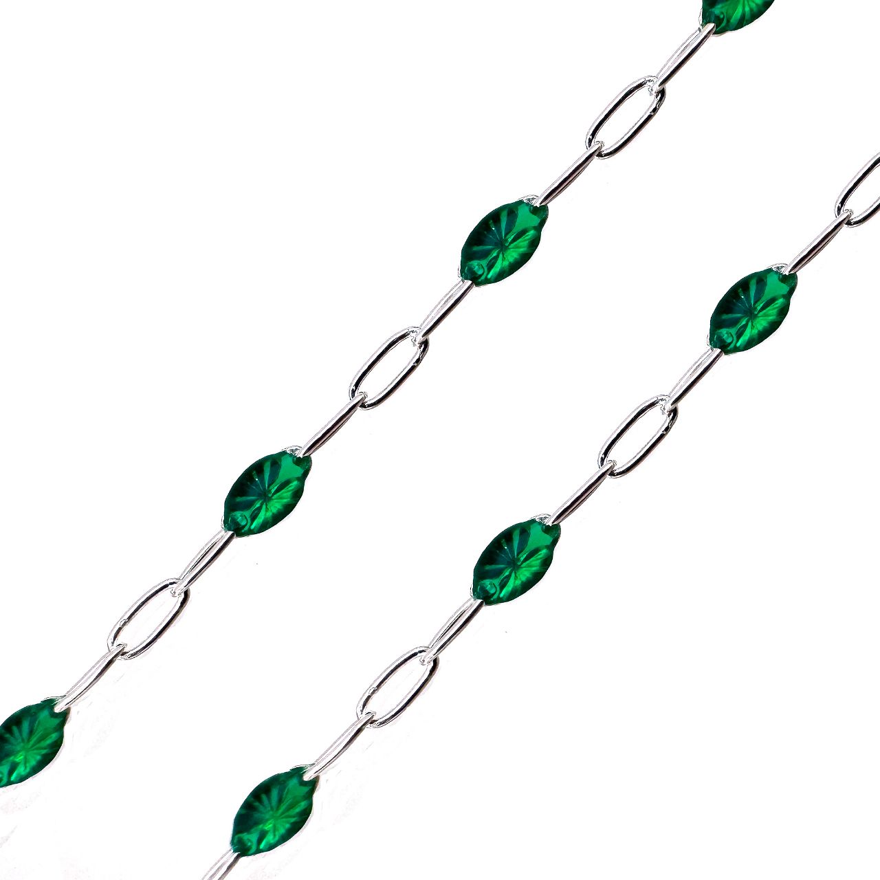 101079- 1+3 emerald enamel paperclip chain