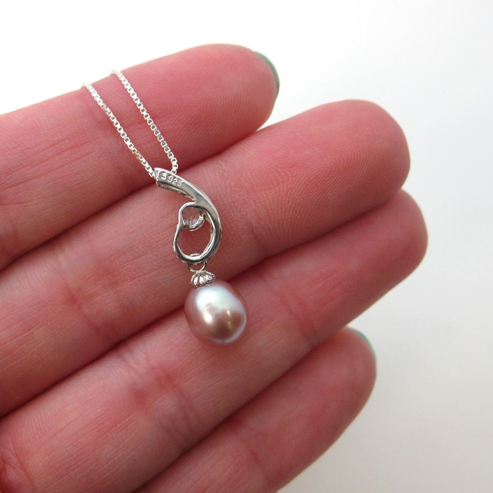 Add to compare list Sterling Silver Cream Freshwater Pearl and CZ Stone Flame Pendant Necklace-16" SKU : AZ20021-CRM Pearl size: 7*10 Necklace Length: 16" Log In for Wholesale Prices